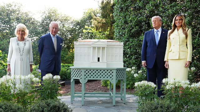 Koning Charles en Camilla bewonderen bijenkast in vorm van Witte Huis ...