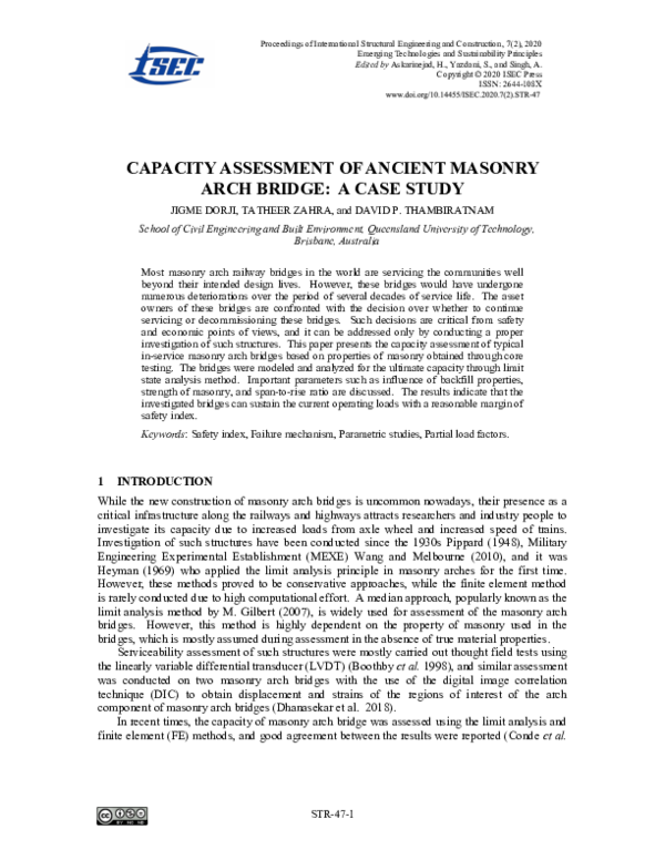 (PDF) Capacity Assessment of Ancient Masonry Arch Bridge: A Case Study ...