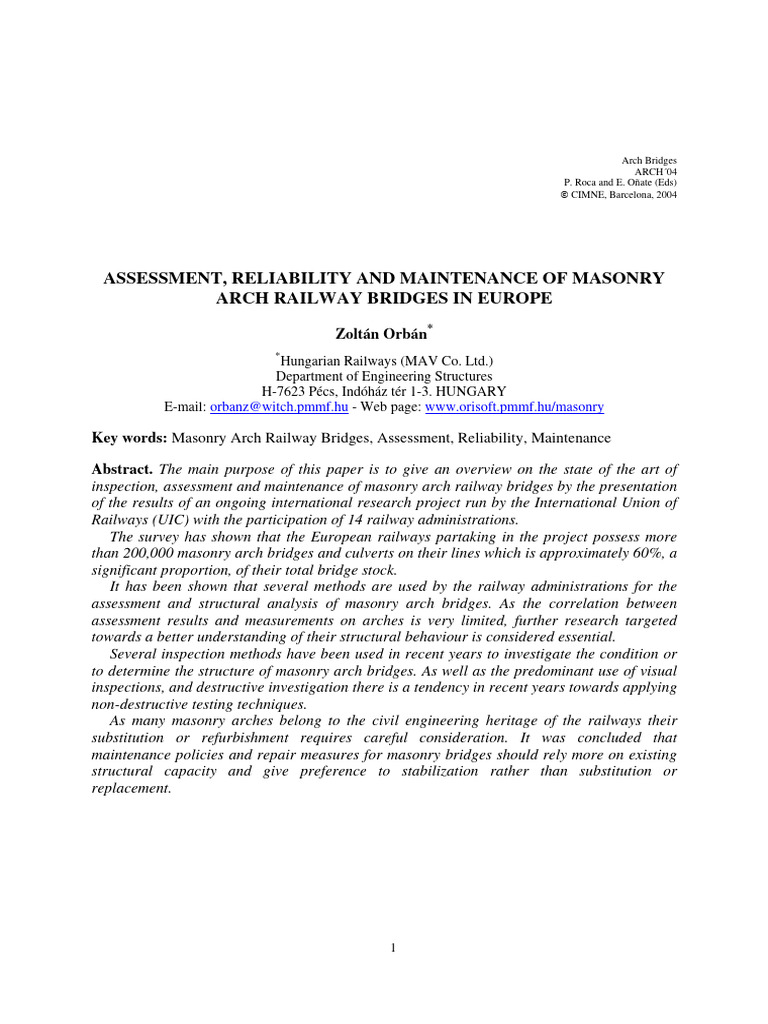 Assessment, Reliability and Maintenance of Masonry Arch Railway Bridges ...