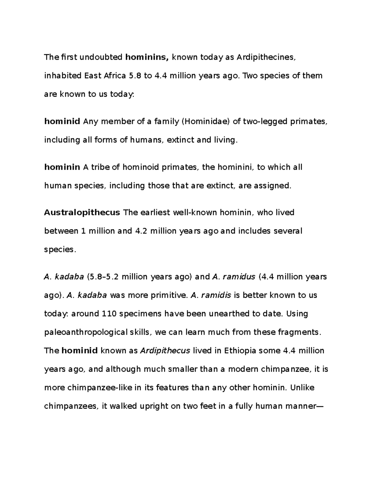 The first hominins - Grade: A - The first undoubted hominins, known ...
