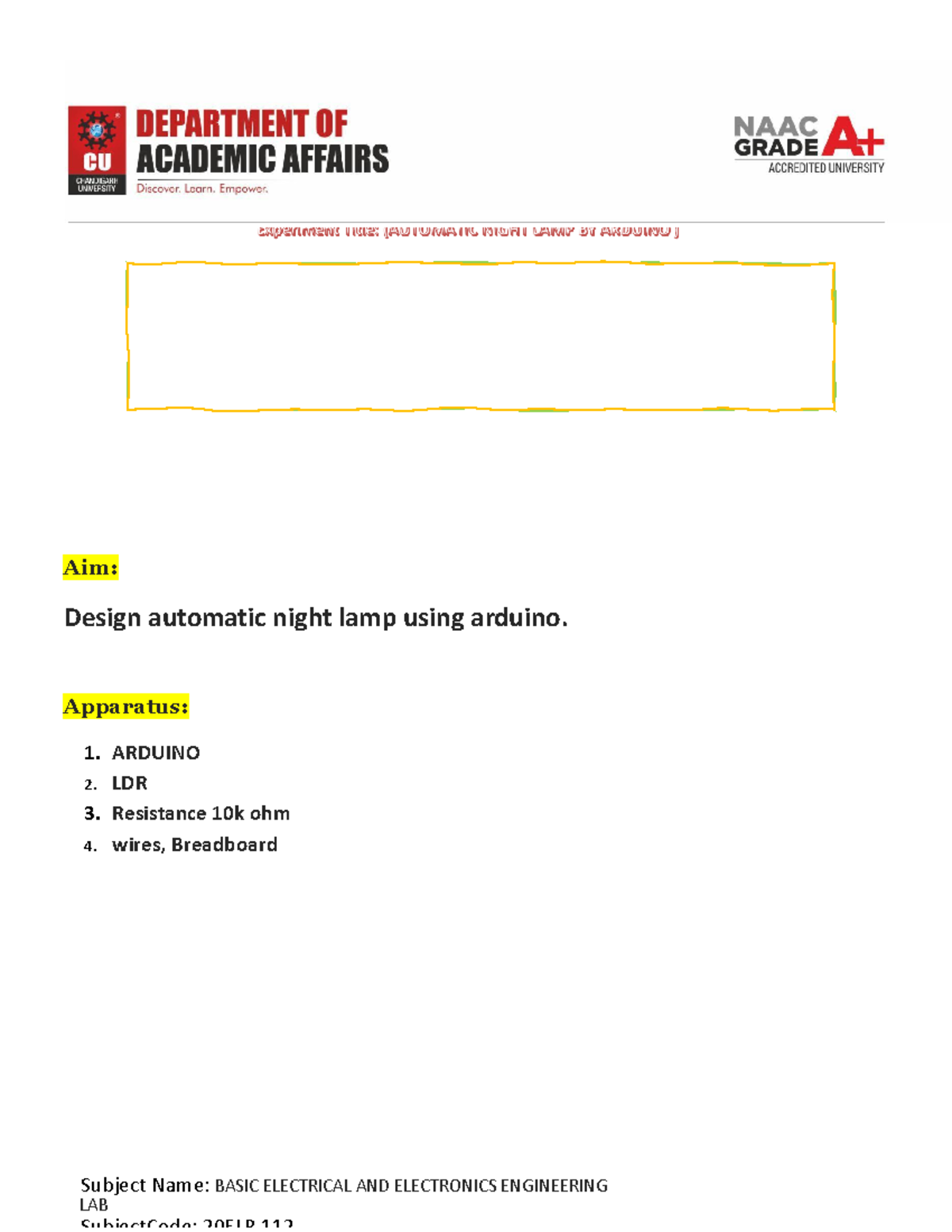 BEEE 10 - experiments - Aim: Design automatic night lamp using arduino ...