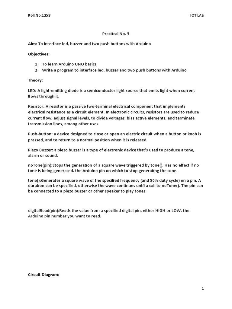 Aim: To Interface Led, Buzzer and Two Push Buttons With Arduino ...