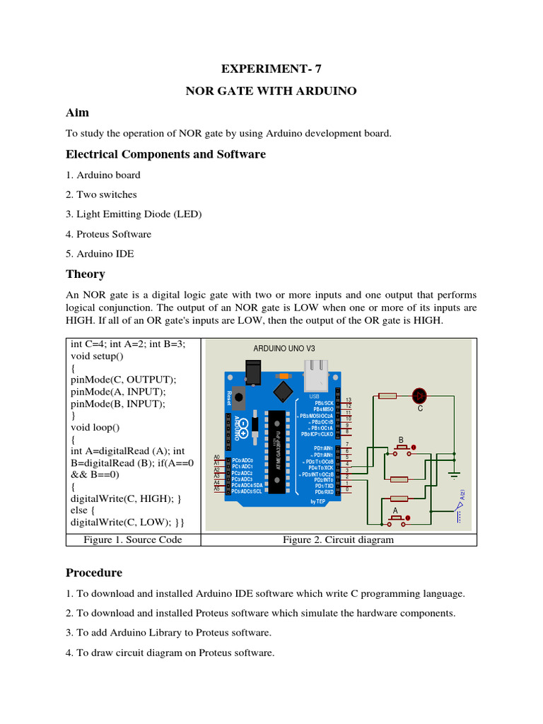 Experiment-7 Nor Gate With Arduino Aim | PDF | Arduino | Computer ...