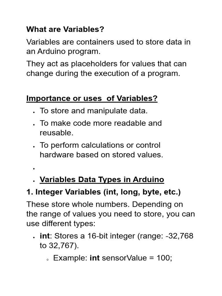 Arduino Variable Types Explained | PDF | Boolean Data Type | Integer ...