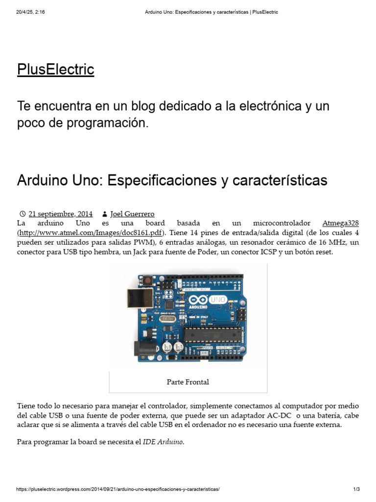 Especificaciones del Arduino Uno | PDF | Arduino | Ciencias de la ...