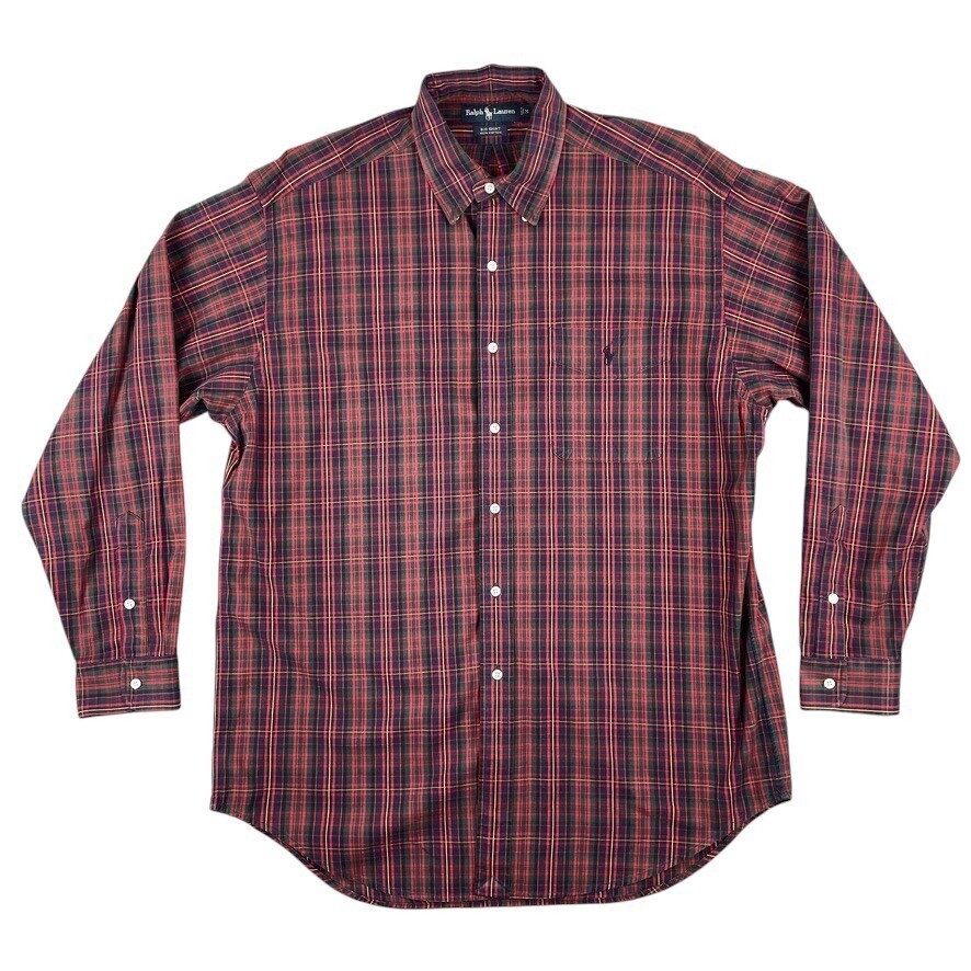 Polo Ralph Lauren Shirt Mens M Red Green Tartan Plaid Button Down Big ...