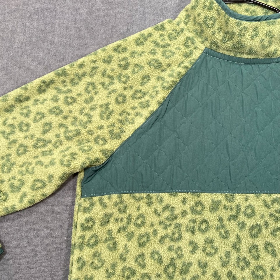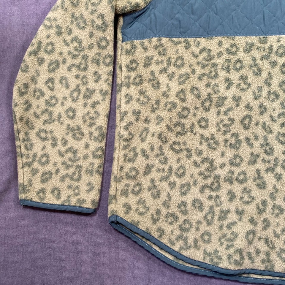 J.Crew Womens XL Leopard Fleece Tunic Pullover Quilted Snap Buttons ...