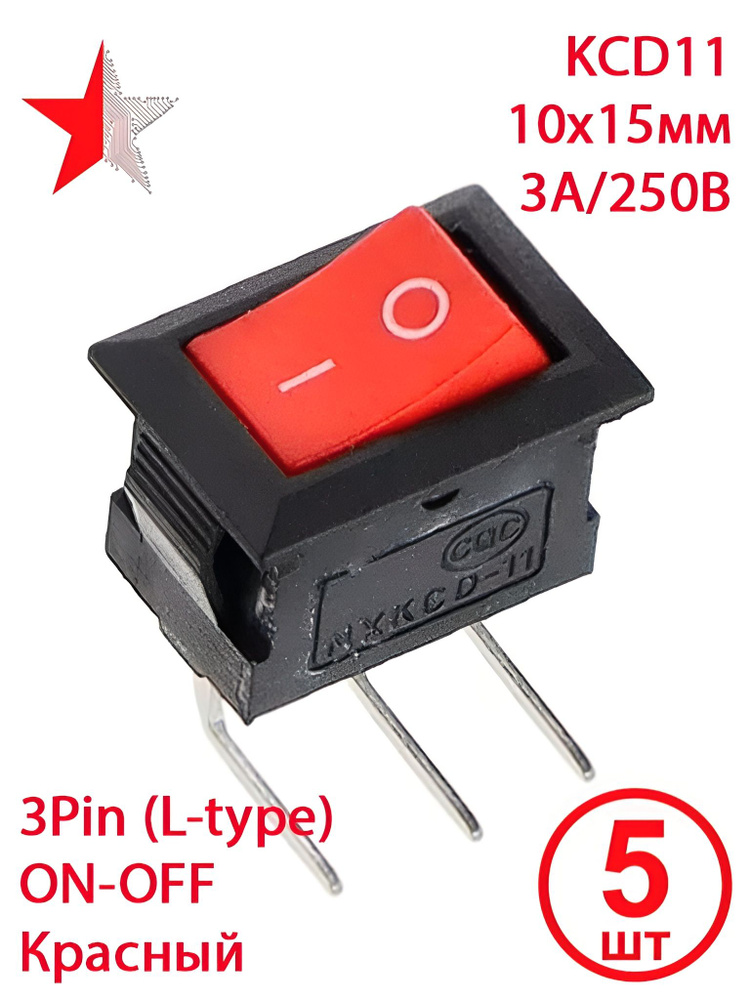 Миниатюрный переключатель (клавишный) - KCD11, 10х15мм, Цвет: Красный ...