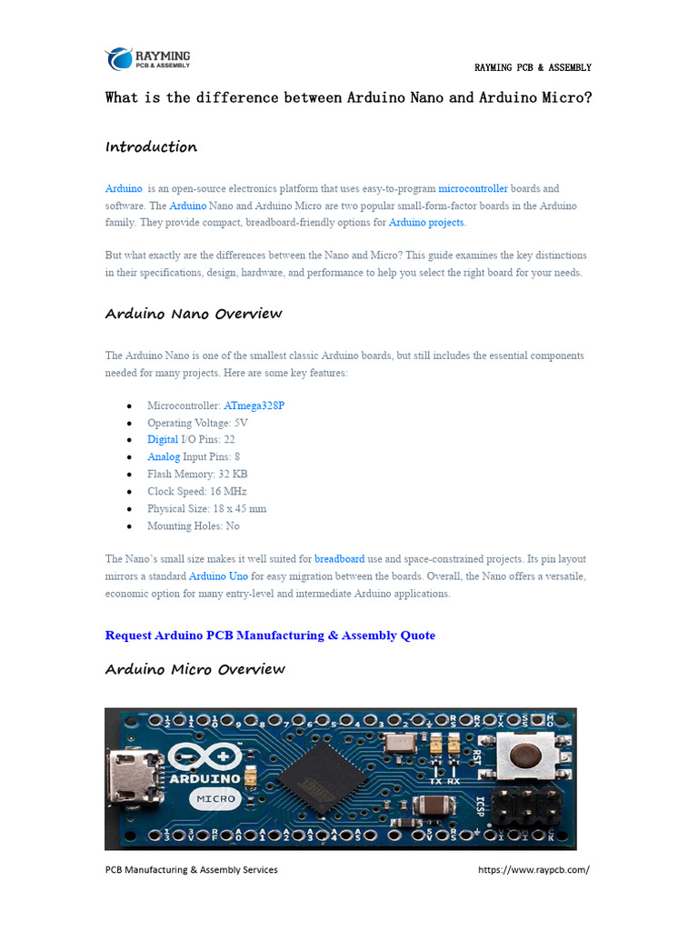What is the difference between Arduino Nano and Arduino Micro? - RayPCB