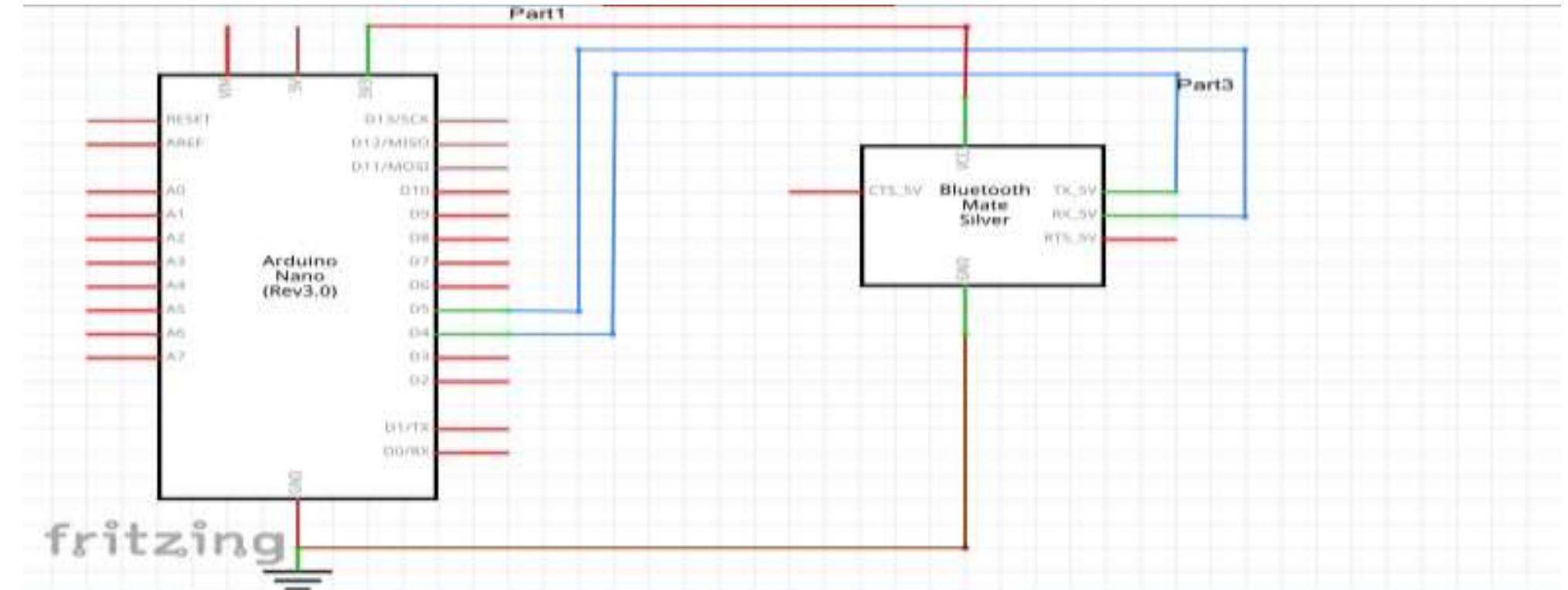 Schematic circuit diagram of arduino nano and bluetooth