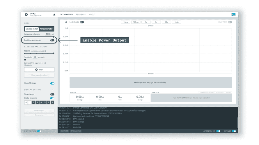 Connect the power profiler to the board.