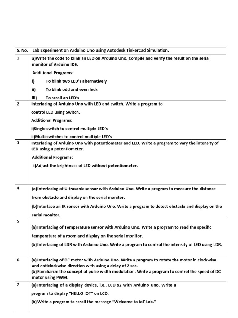 IPCC Lab Manual: Arduino Experiments & Projects Guide - Studocu