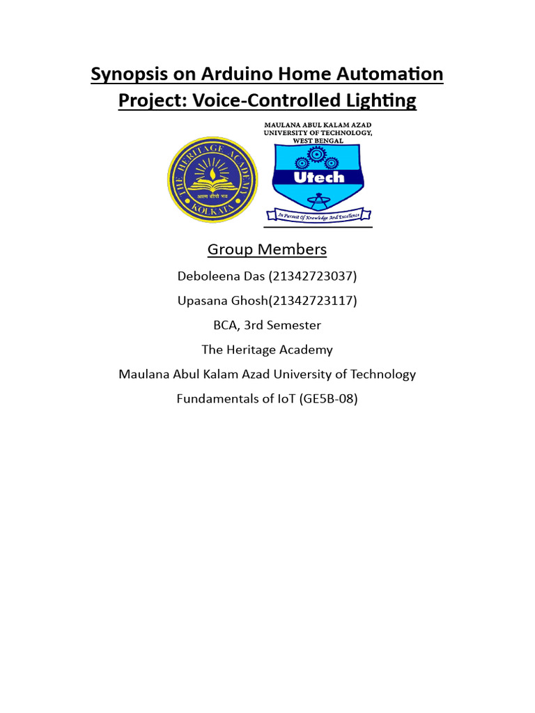Synopsis of Arduino Home Automation | PDF | Arduino | Speech Recognition