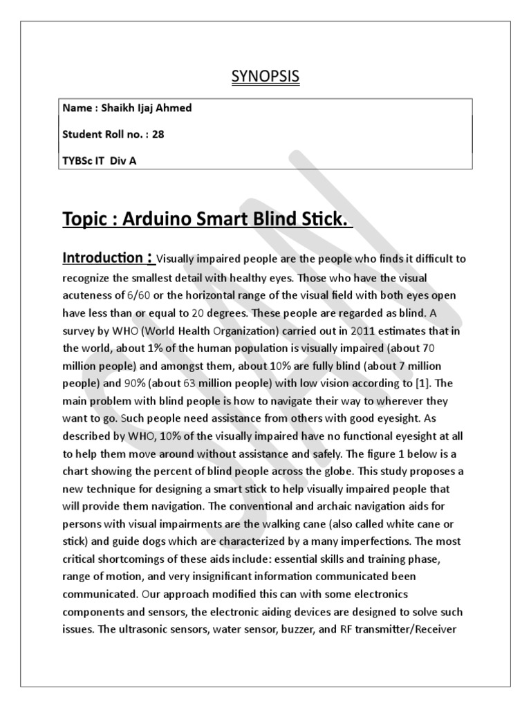 Arduino Smart Blind Stick Synopsis | PDF | Visual Impairment | Ultrasound