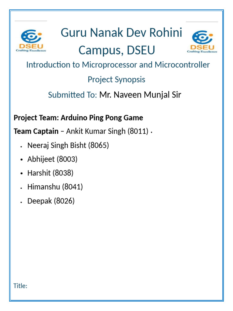 Arduino Game Project Synopsis | PDF | Arduino | Graphical User Interfaces