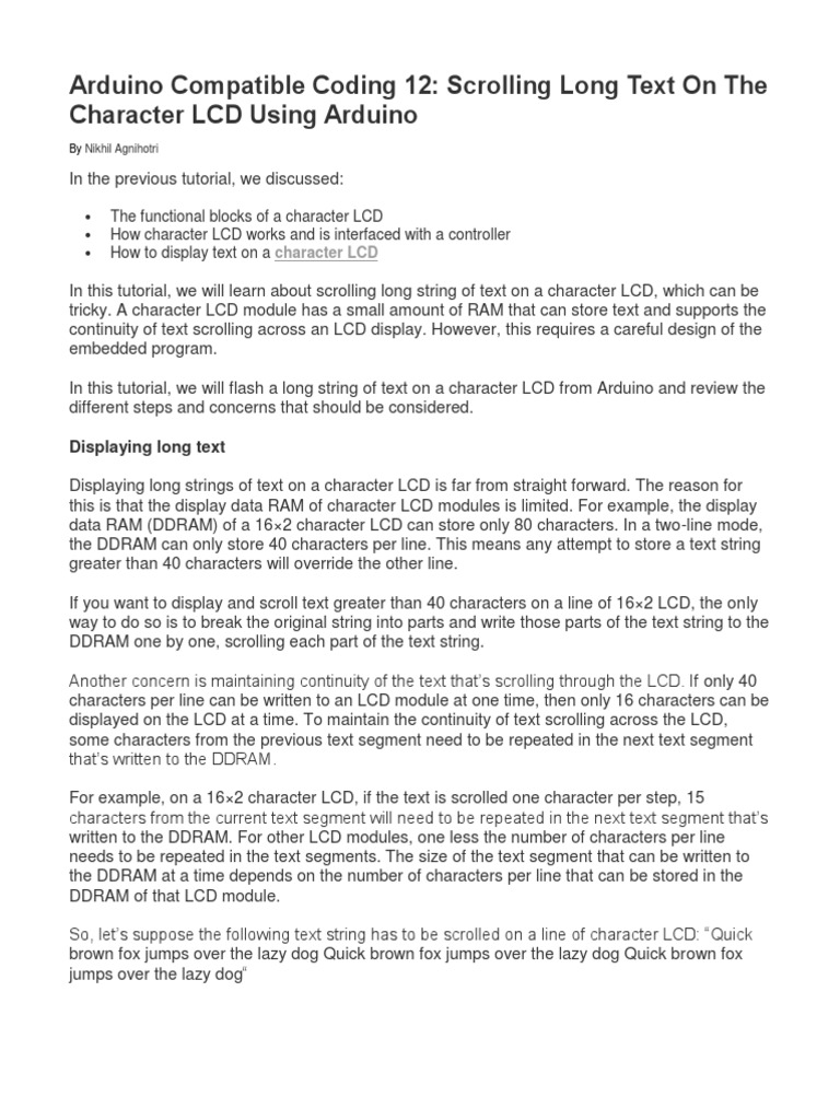 Arduino Compatible Coding 12 - Scrolling Long Text On The Character LCD ...