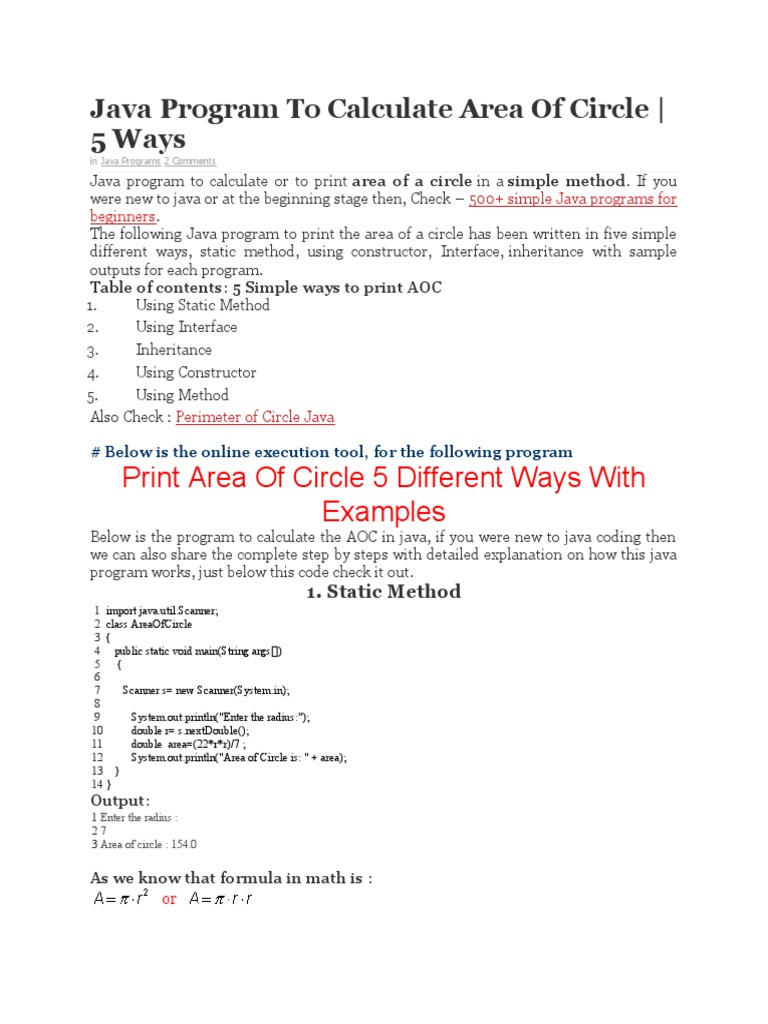 How To Calculate Area Of A Circle In Java at Jon Jefferson blog