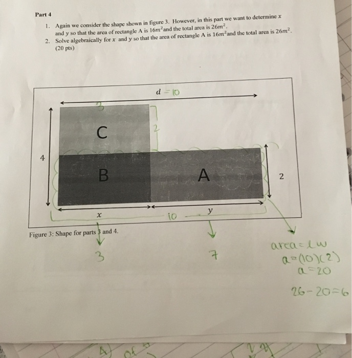 Solved solve algebraically for x and y so that the area of | Chegg.com