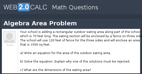 View question - Algebra Area Problem