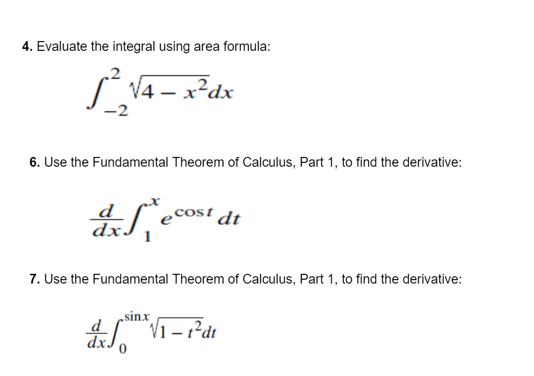 Solved 4. Evaluate the integral using area formula: \\[ | Chegg.com