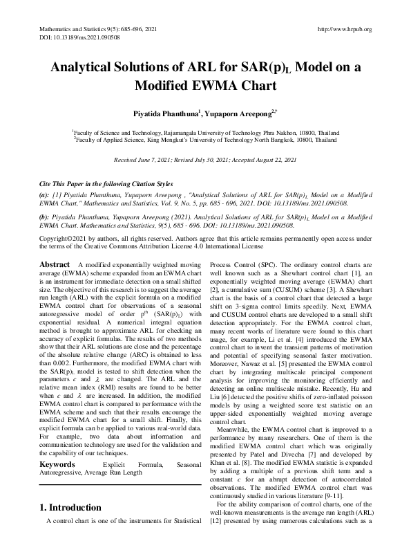 (PDF) Analytical Solutions of ARL for SAR(p) L Model on a Modified EWMA ...