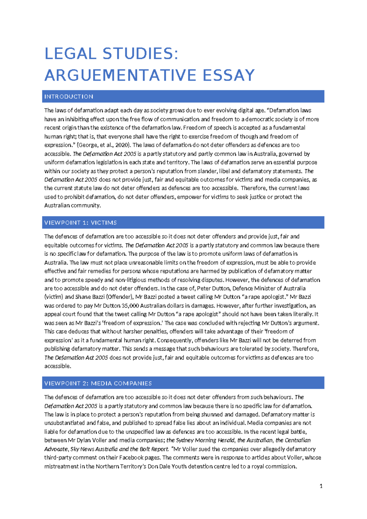 Argumentative Essay - legal studies - LEGAL STUDIES: ARGUEMENTATIVE ...