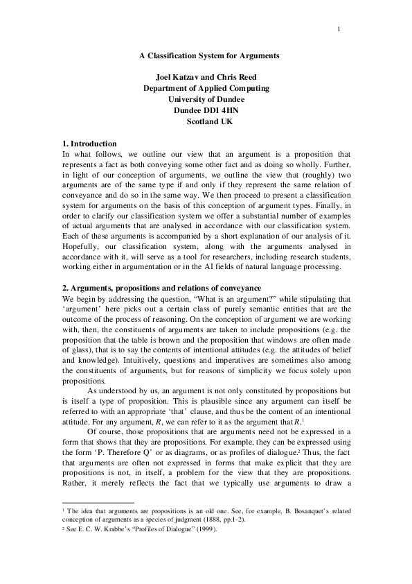 (PPT) CLASSIFYING ARGUMENT MODELS