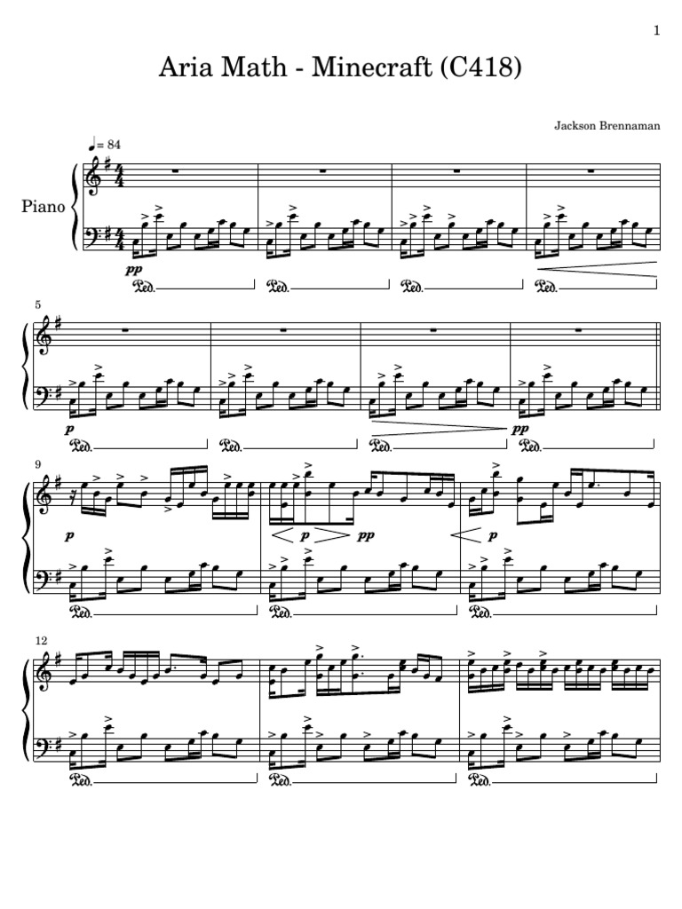 Aria Math (from Minecraft) – C418 VERSION 2 Sheet Music for Piano ...