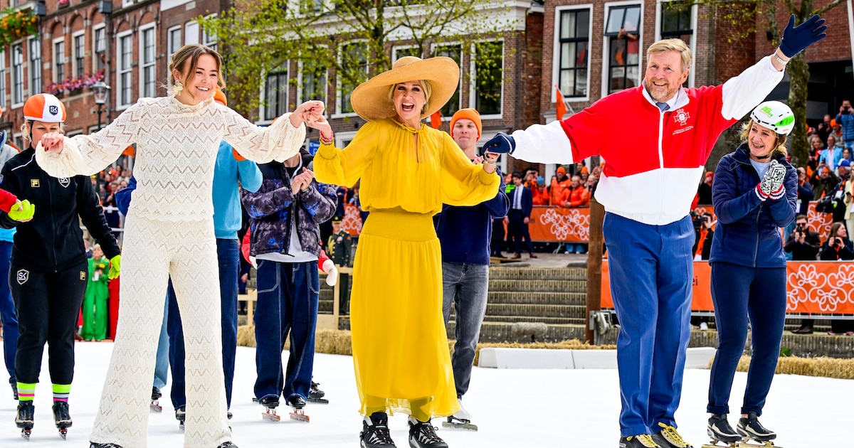 Koningspaar en prinses Ariane genieten van schaatstocht in Dokkum