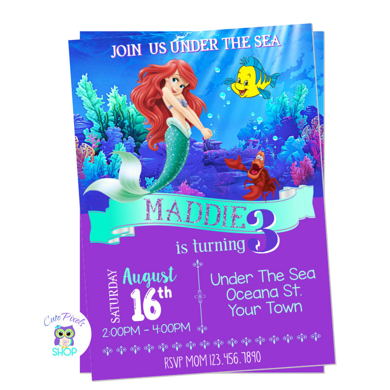 Little Mermaid Invitation - Princess Ariel Invitation – Cute Pixels Shop
