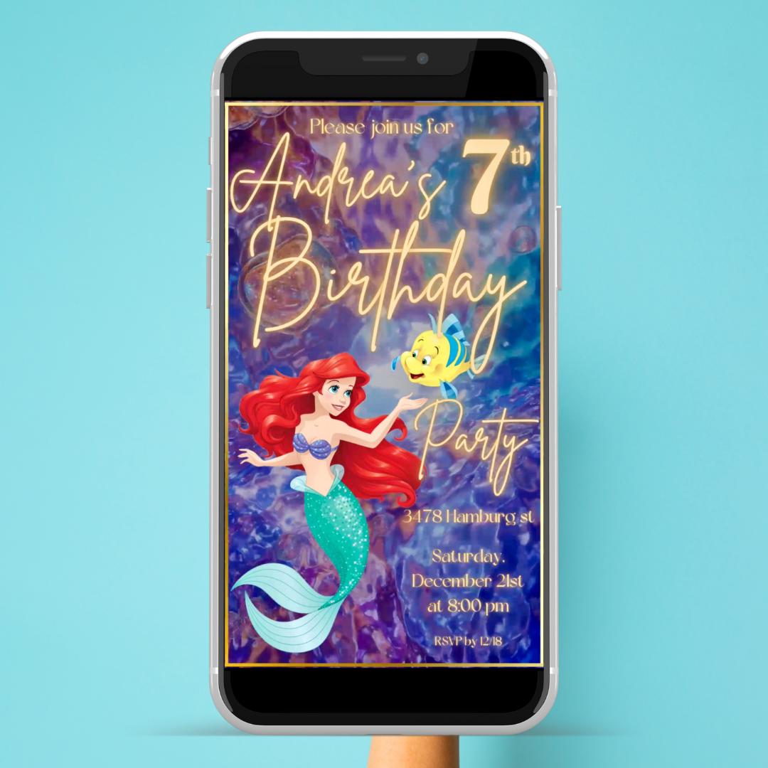 Editable Ariel Birthday Invitation, Little Mermaid Birthday Video ...