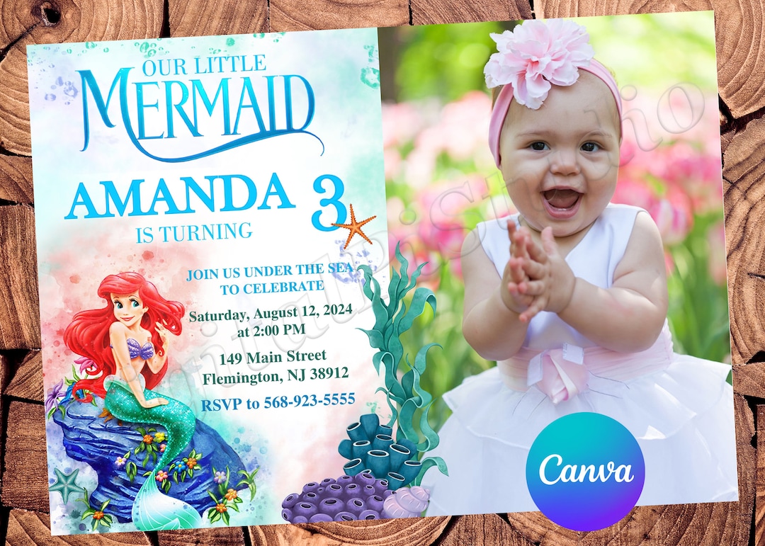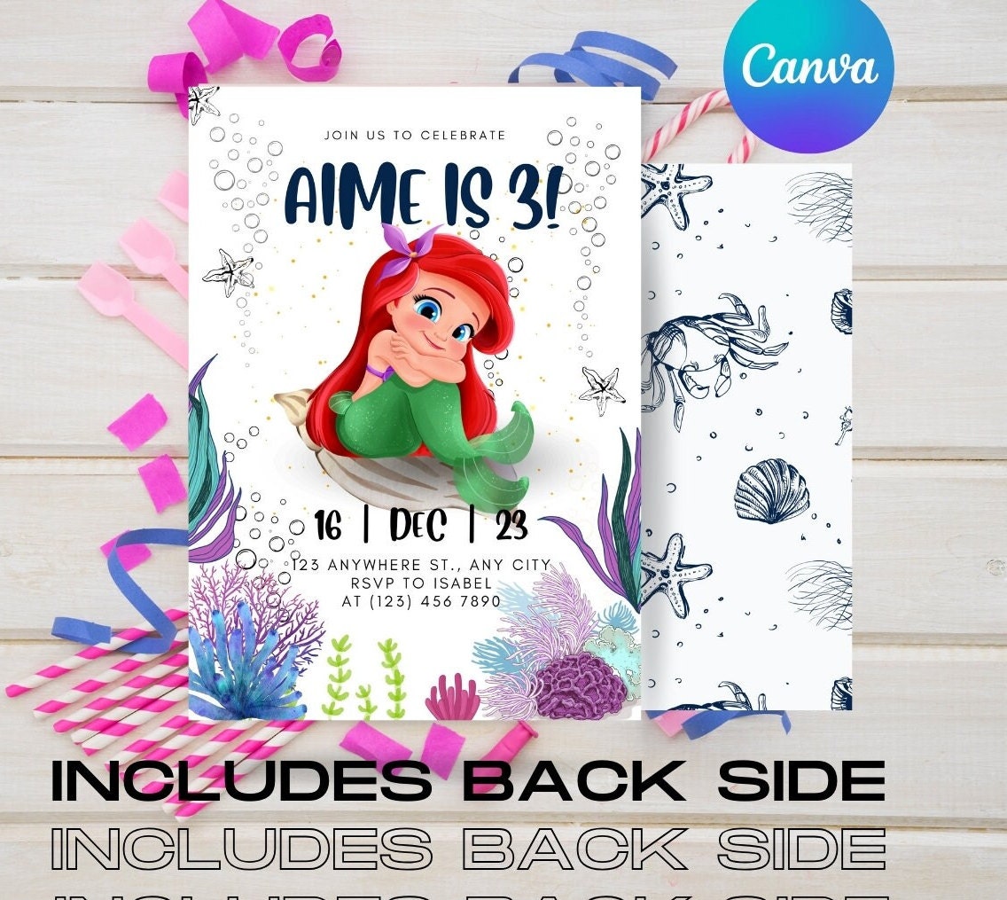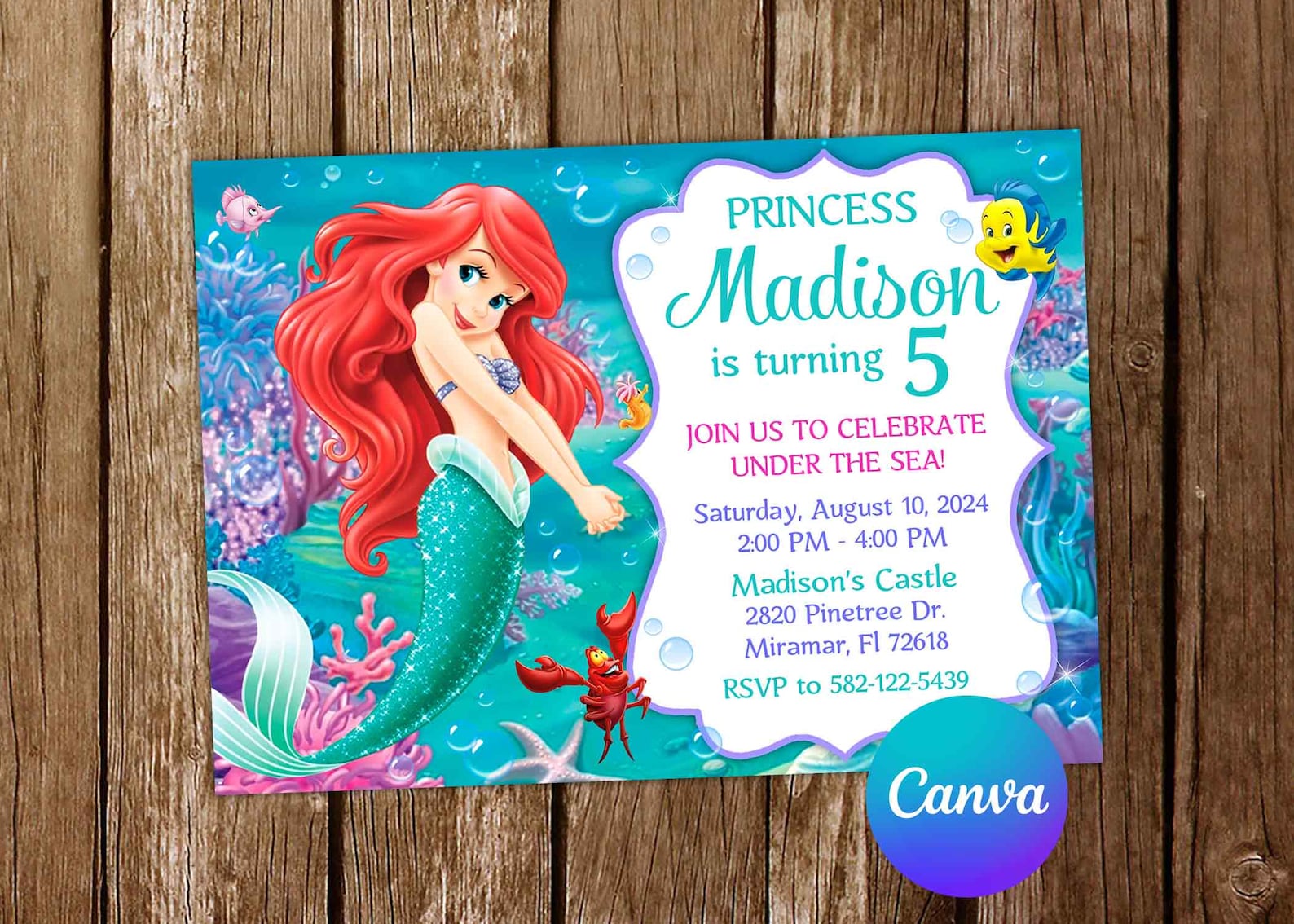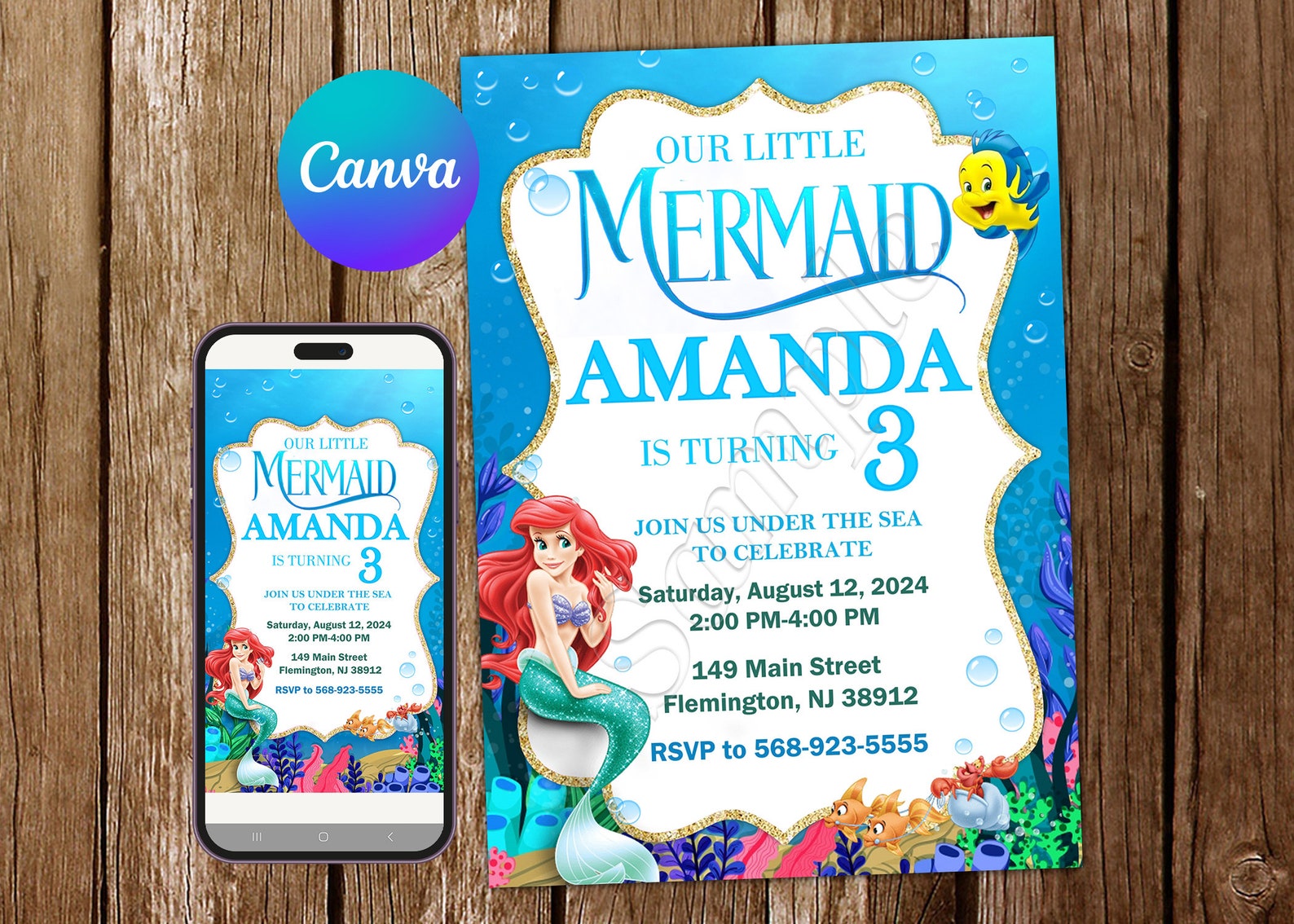 18 ariel the little mermaid canva birthday invitation templates – Artofit