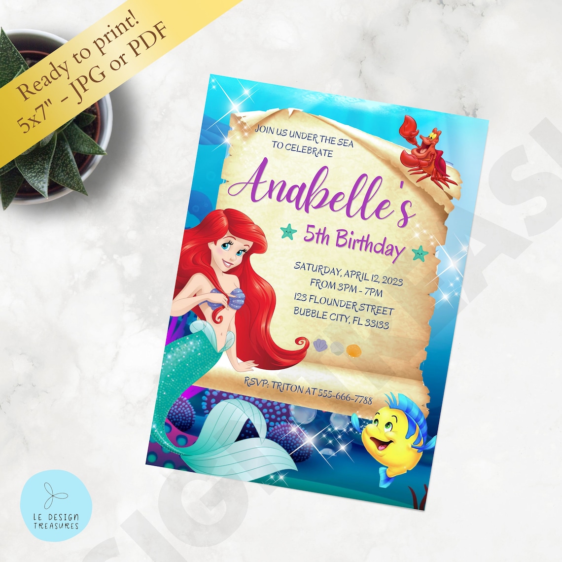 Little Mermaid Invitation, Ariel Invitation, Disney Little Mermaid ...