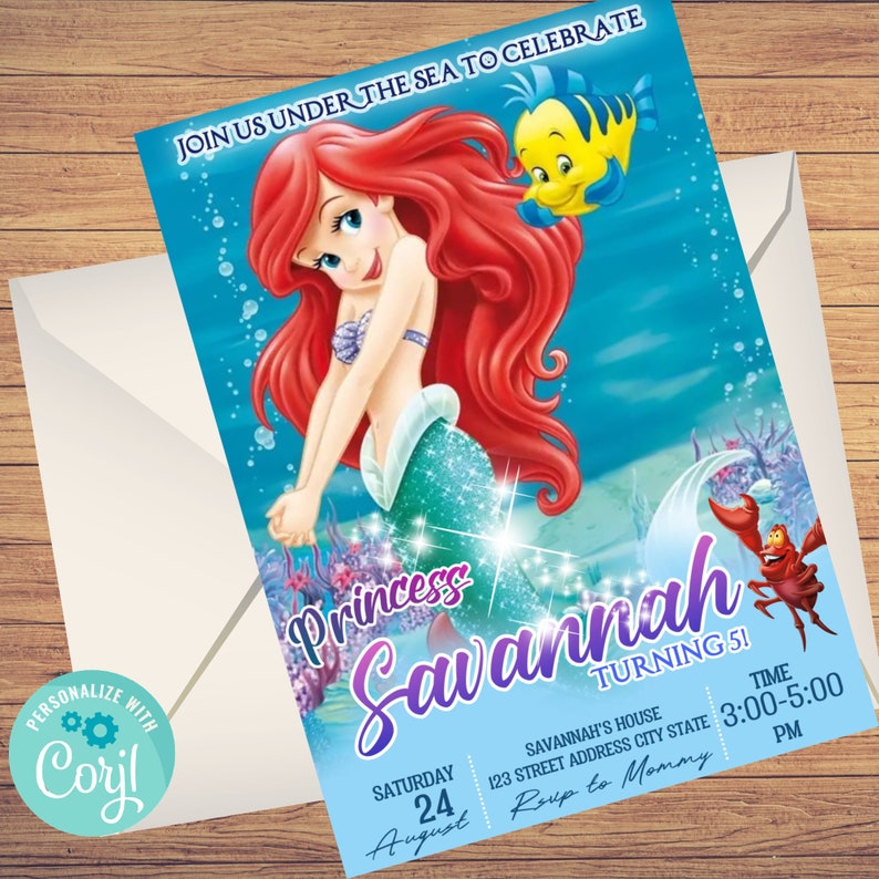 Ariel The Little Mermaid customizable invitation template | Share or ...