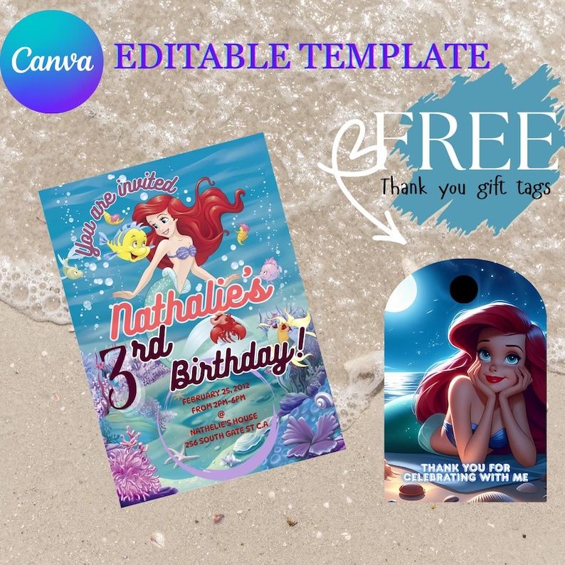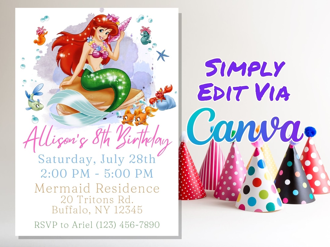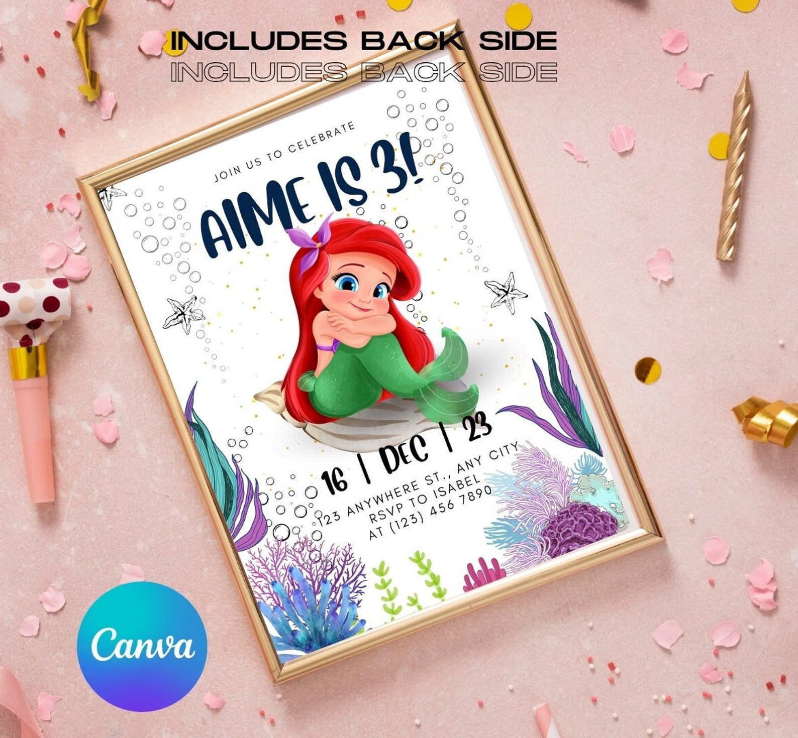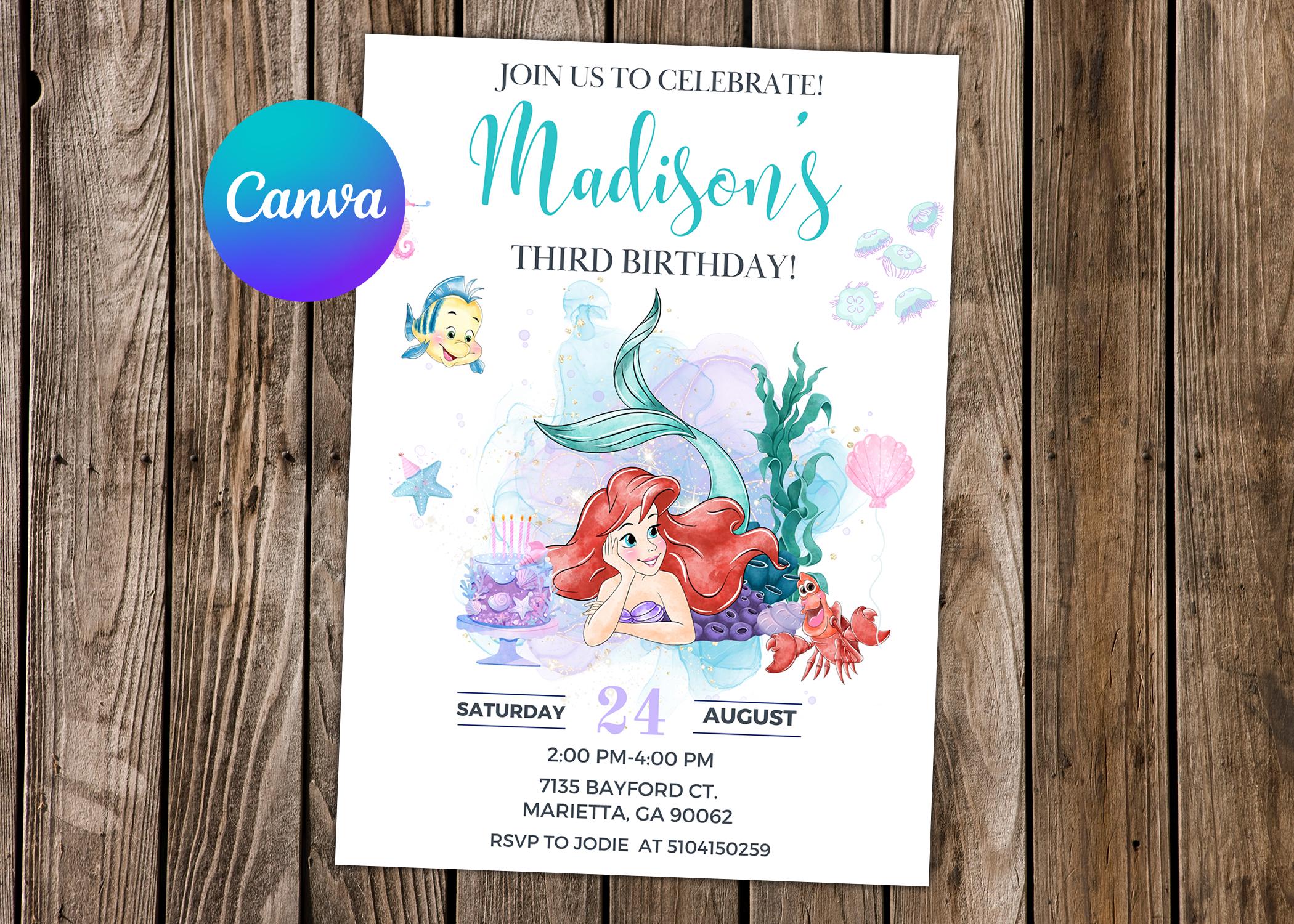 18 ariel the little mermaid canva birthday invitation templates – Artofit