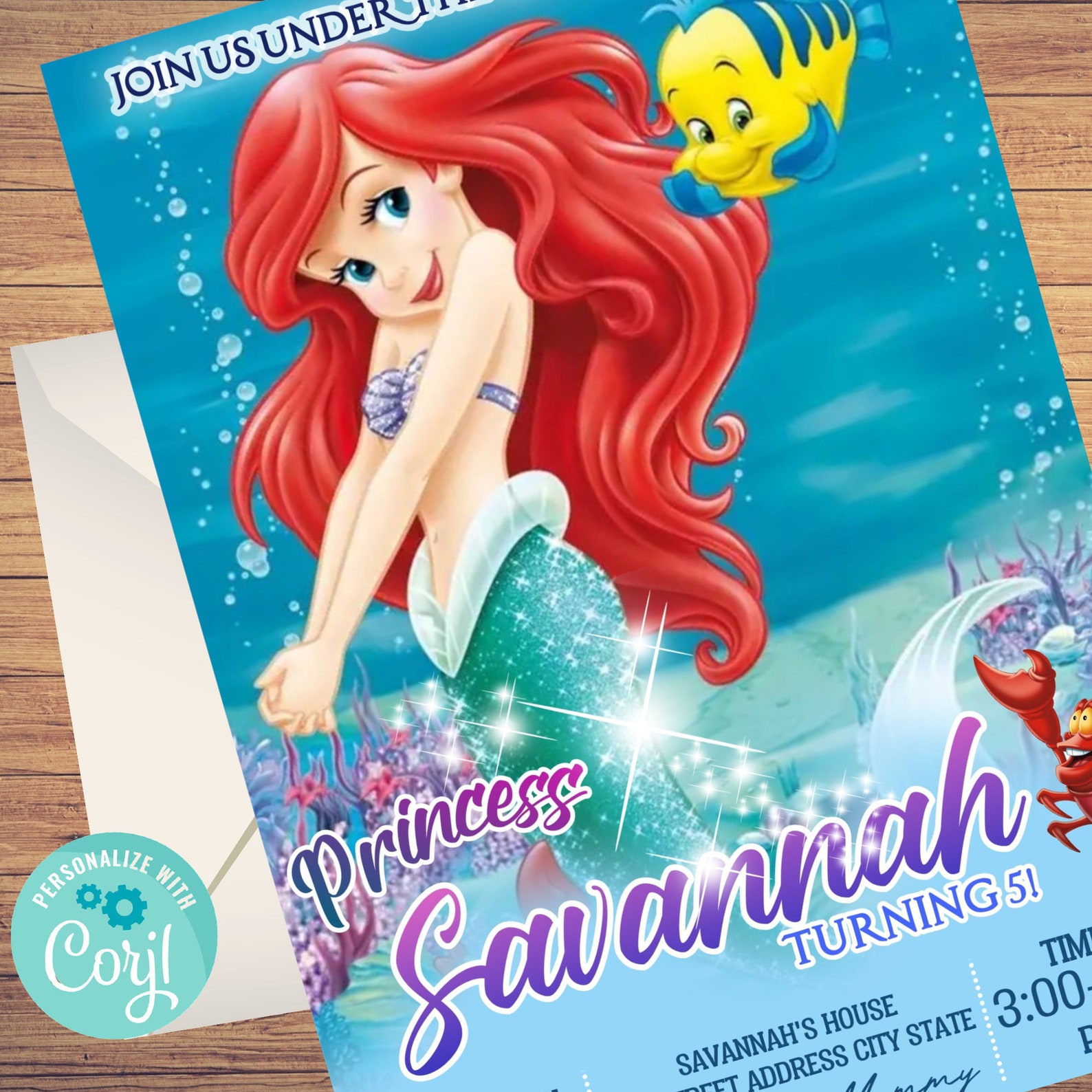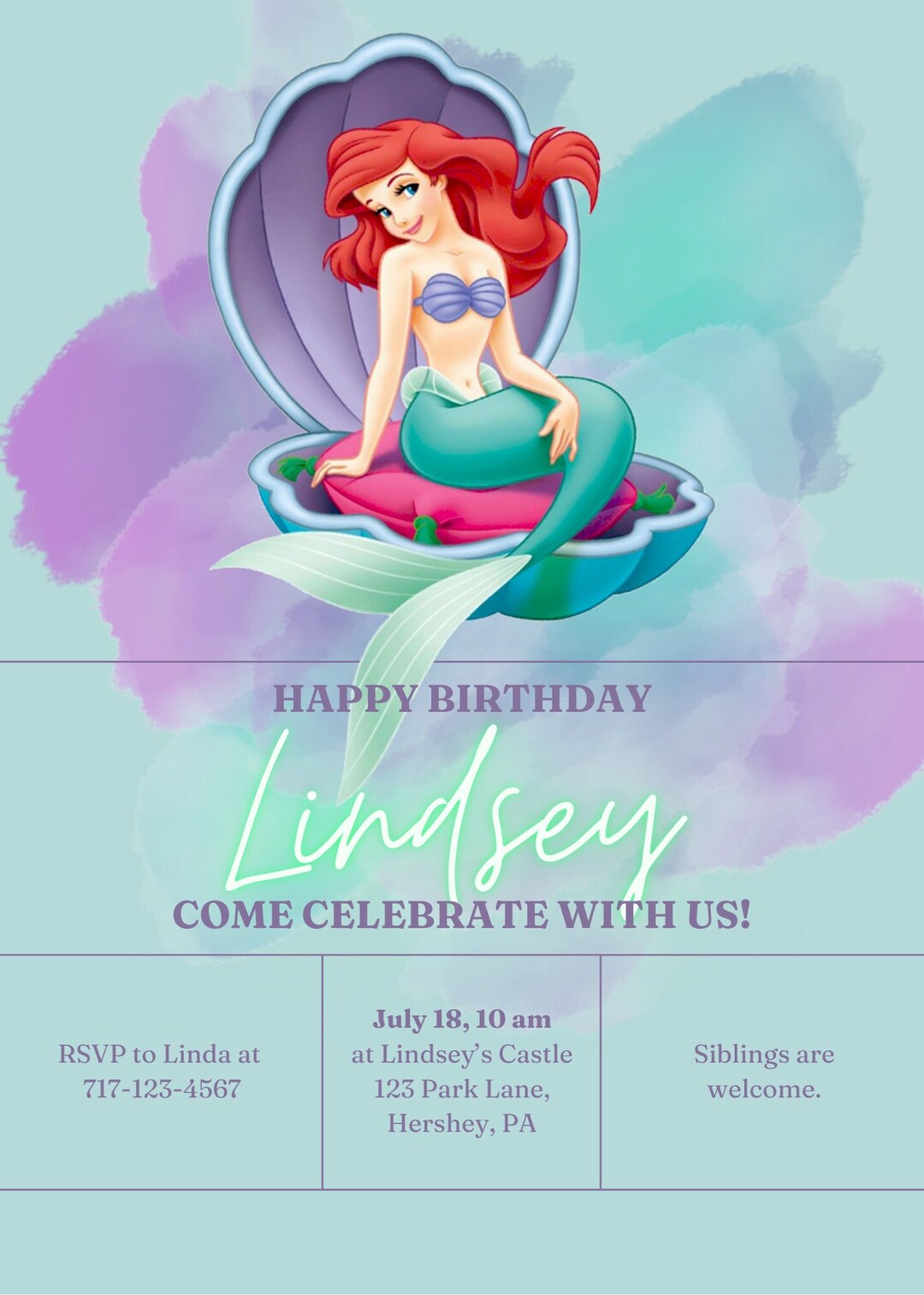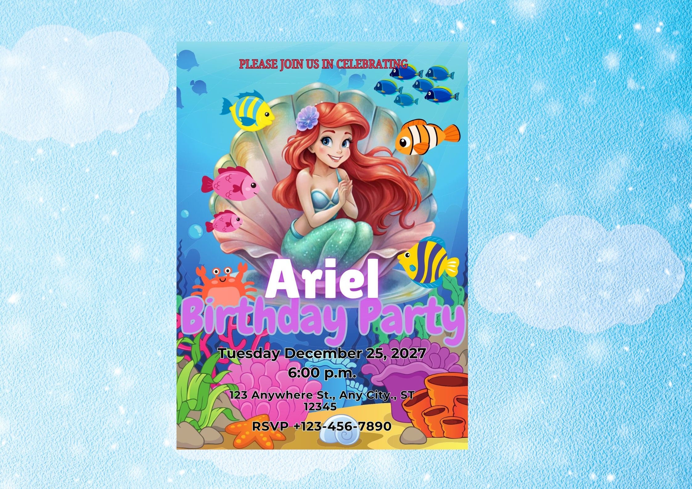 Disney Ariel Birthday Invitation Template | PosterMyWall
