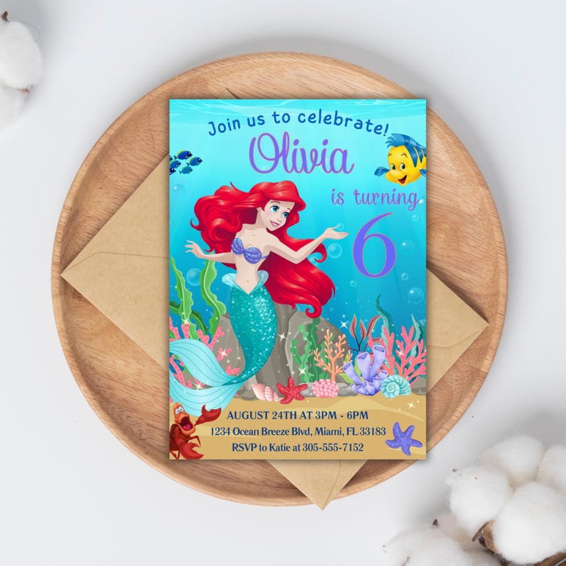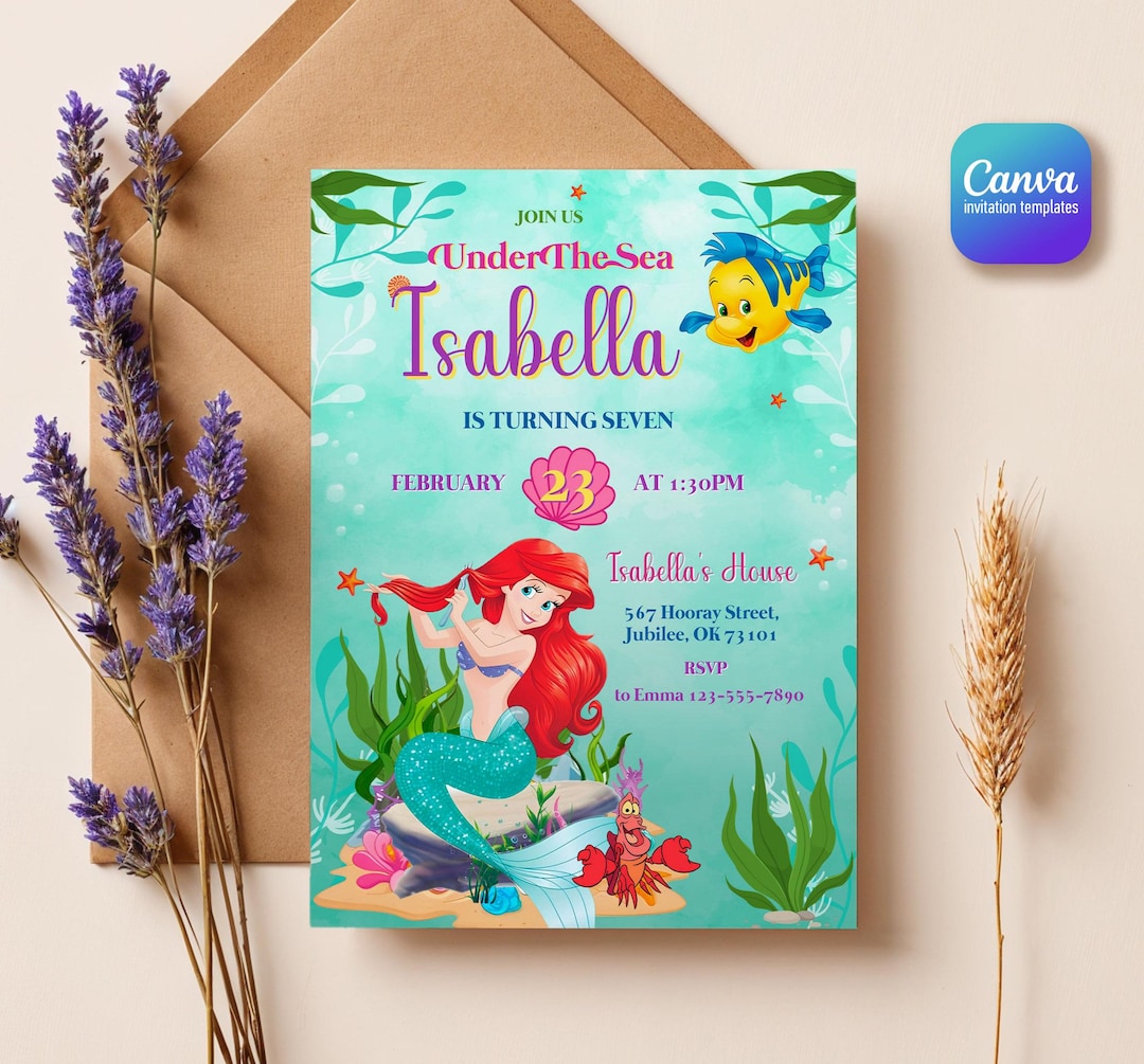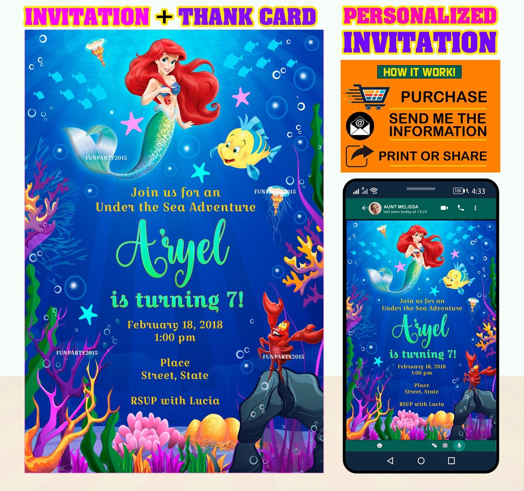 Little Mermaid Invitation Ariel Invitation Little Mermaid - Etsy