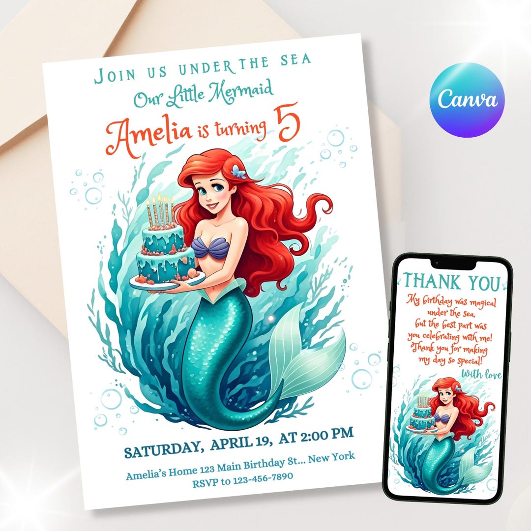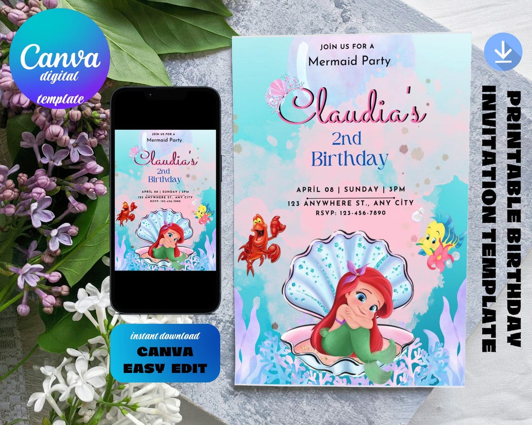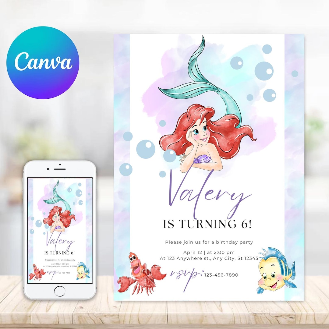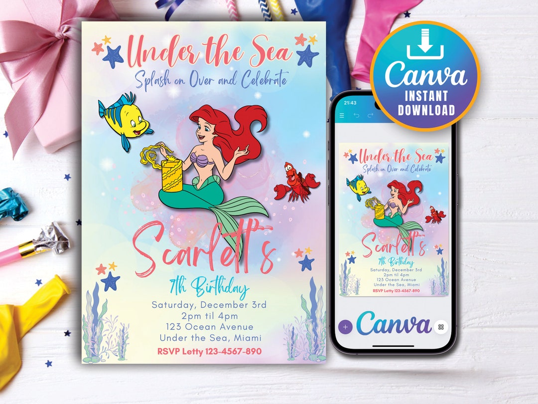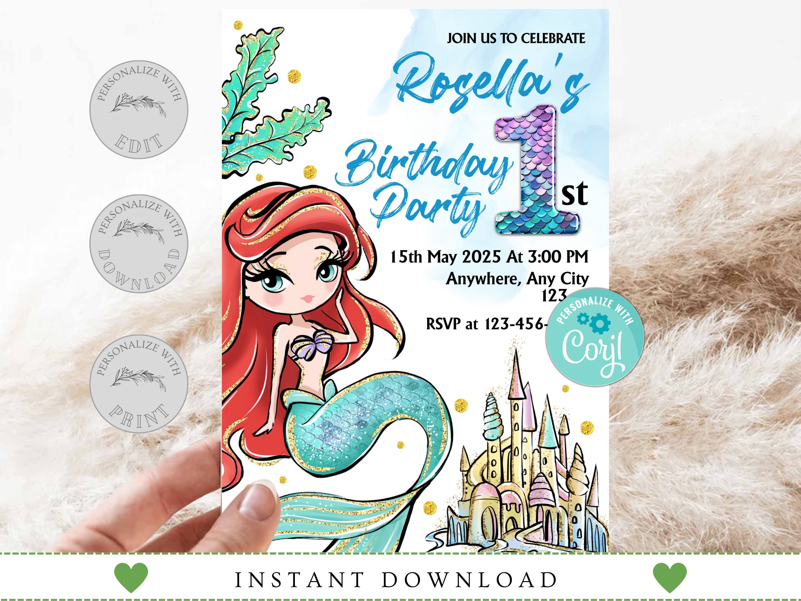 Ariel the Little Mermaid Invitation Editable PDF Digital - Etsy