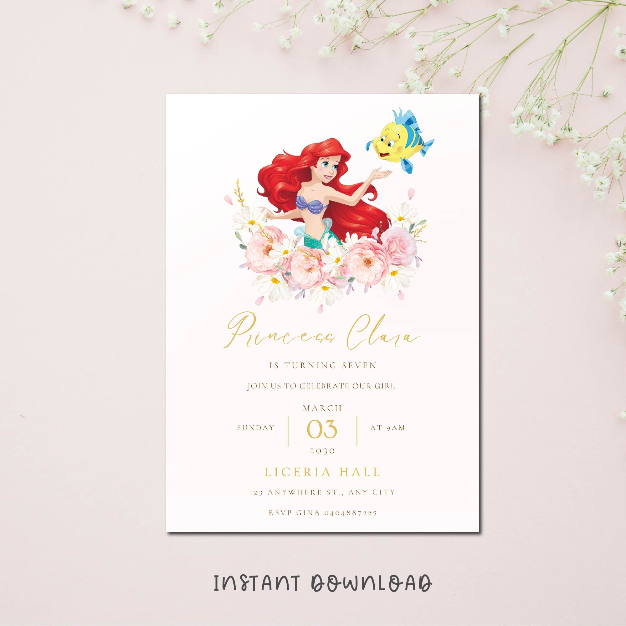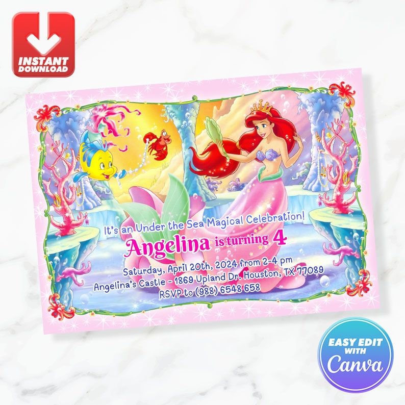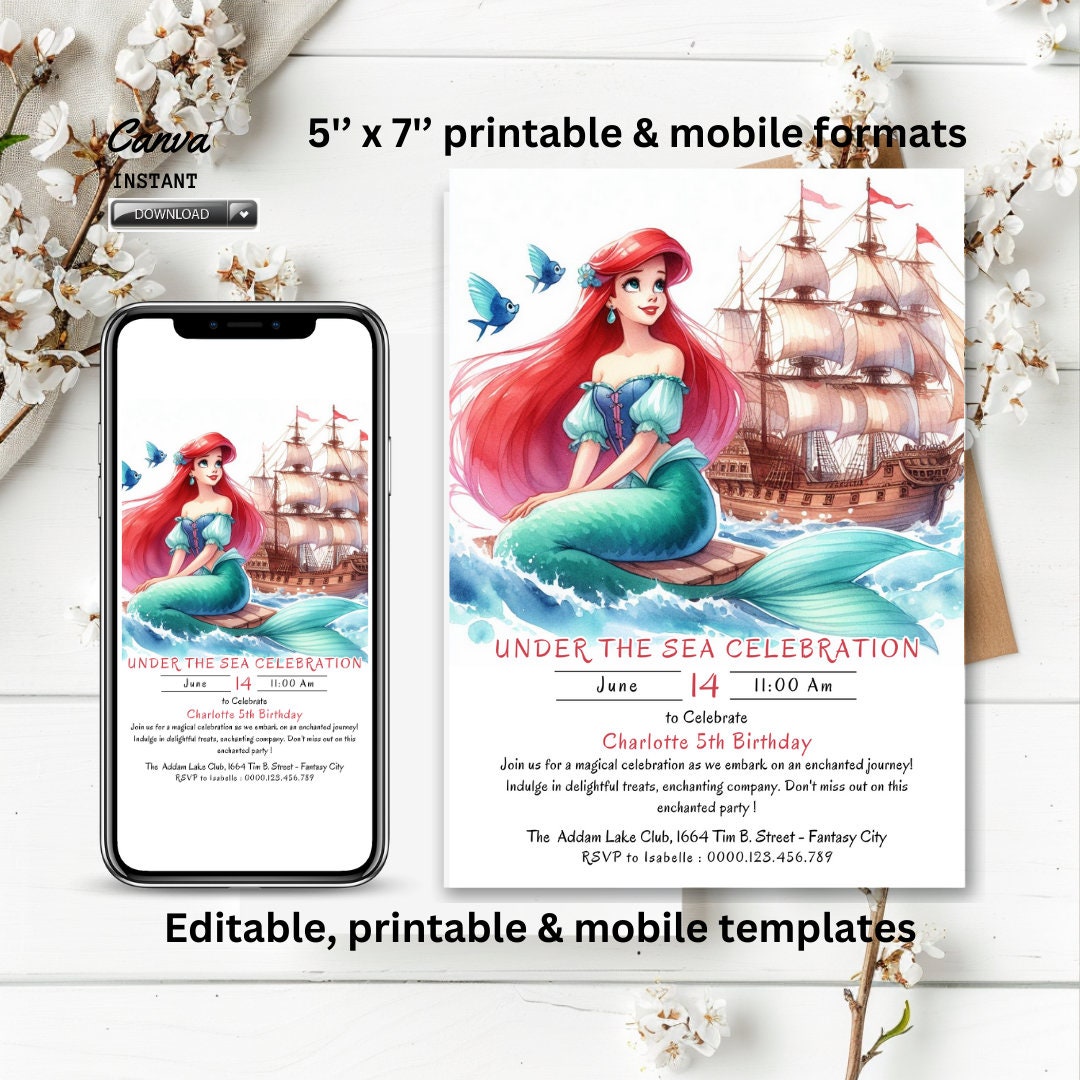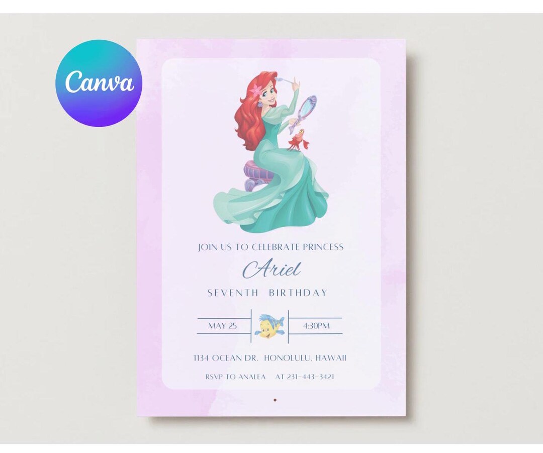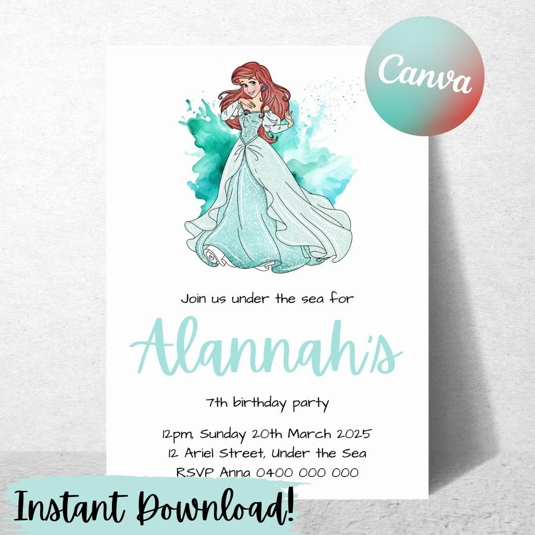 Ariel the Little Mermaid Invitation Editable PDF Digital - Etsy