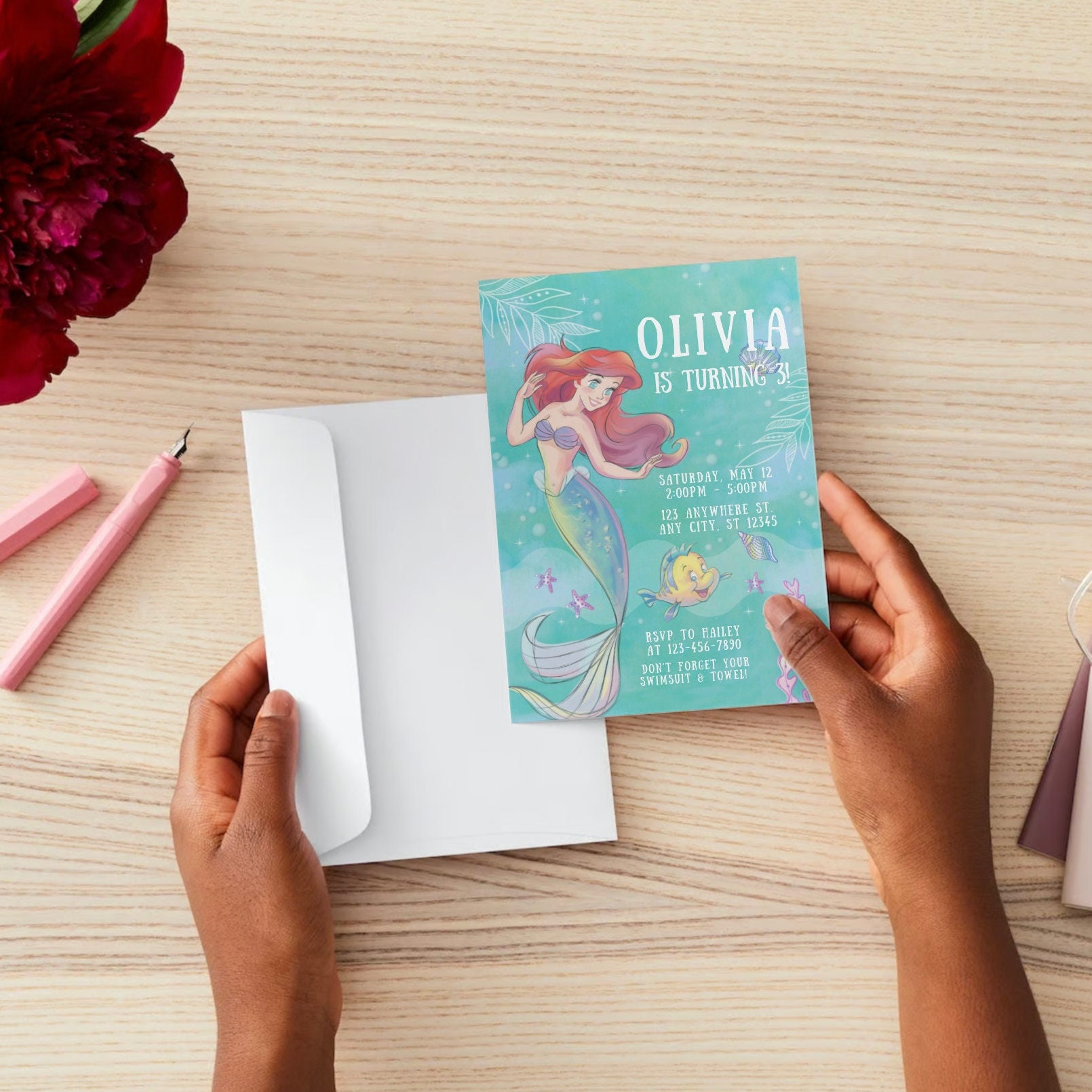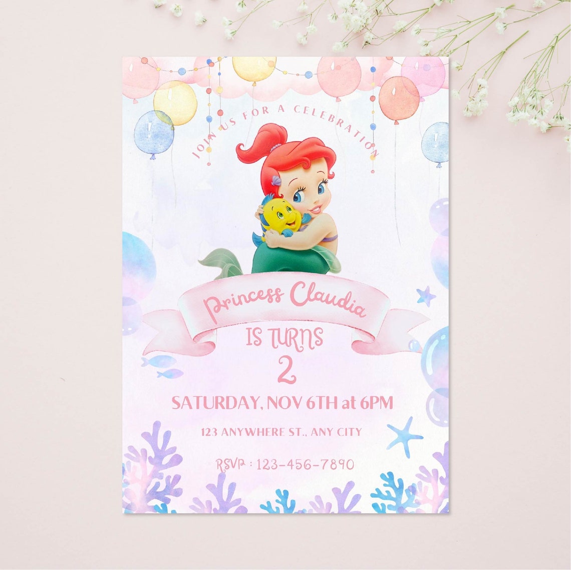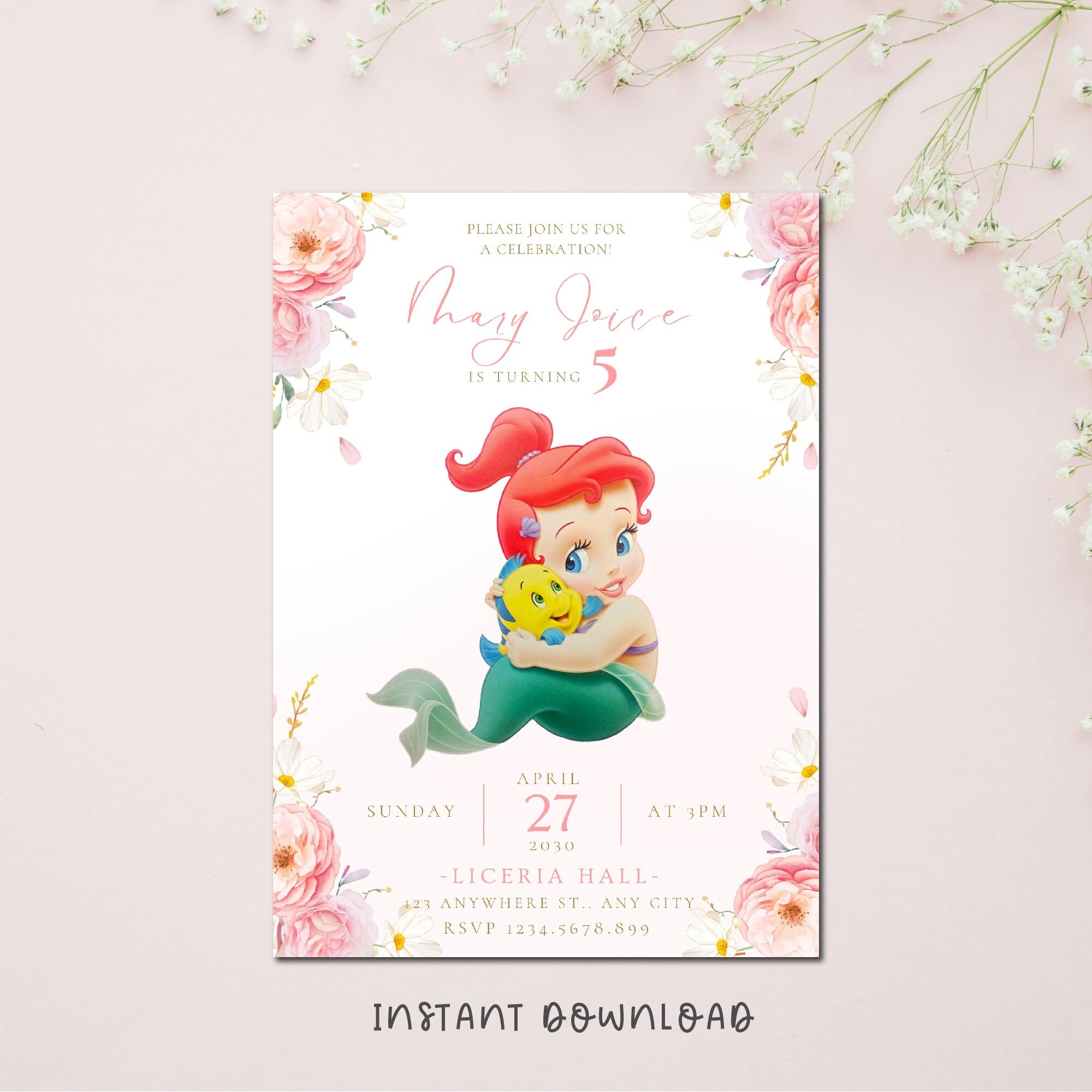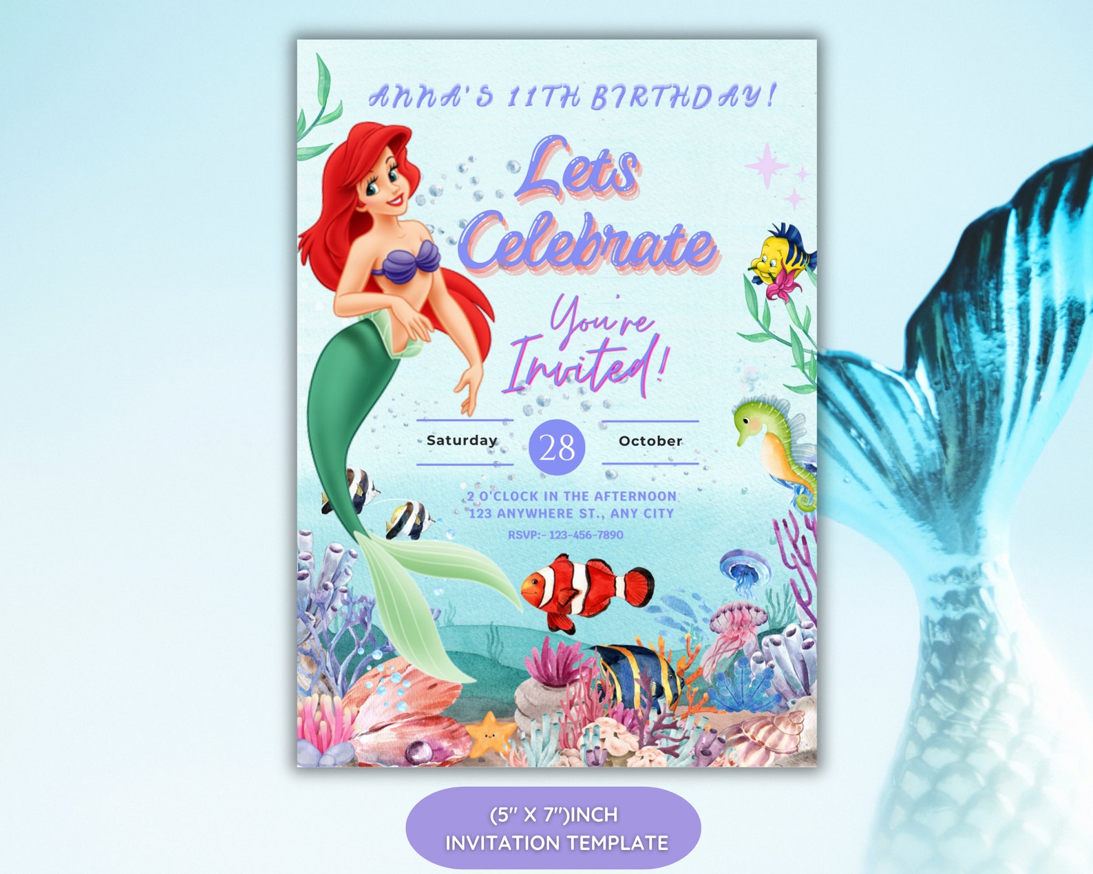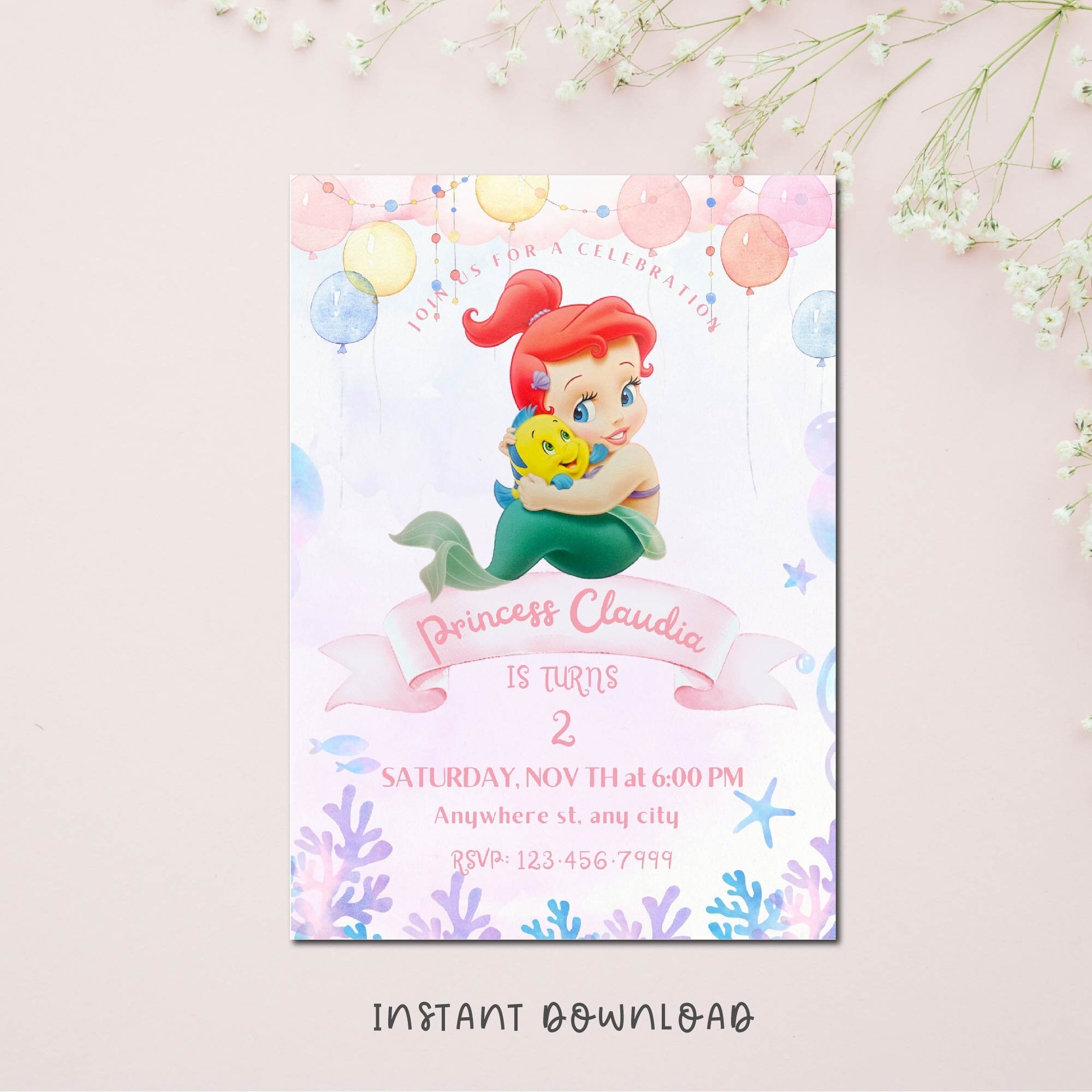 Ariel The Little Mermaid customizable invitation template | Share or P ...