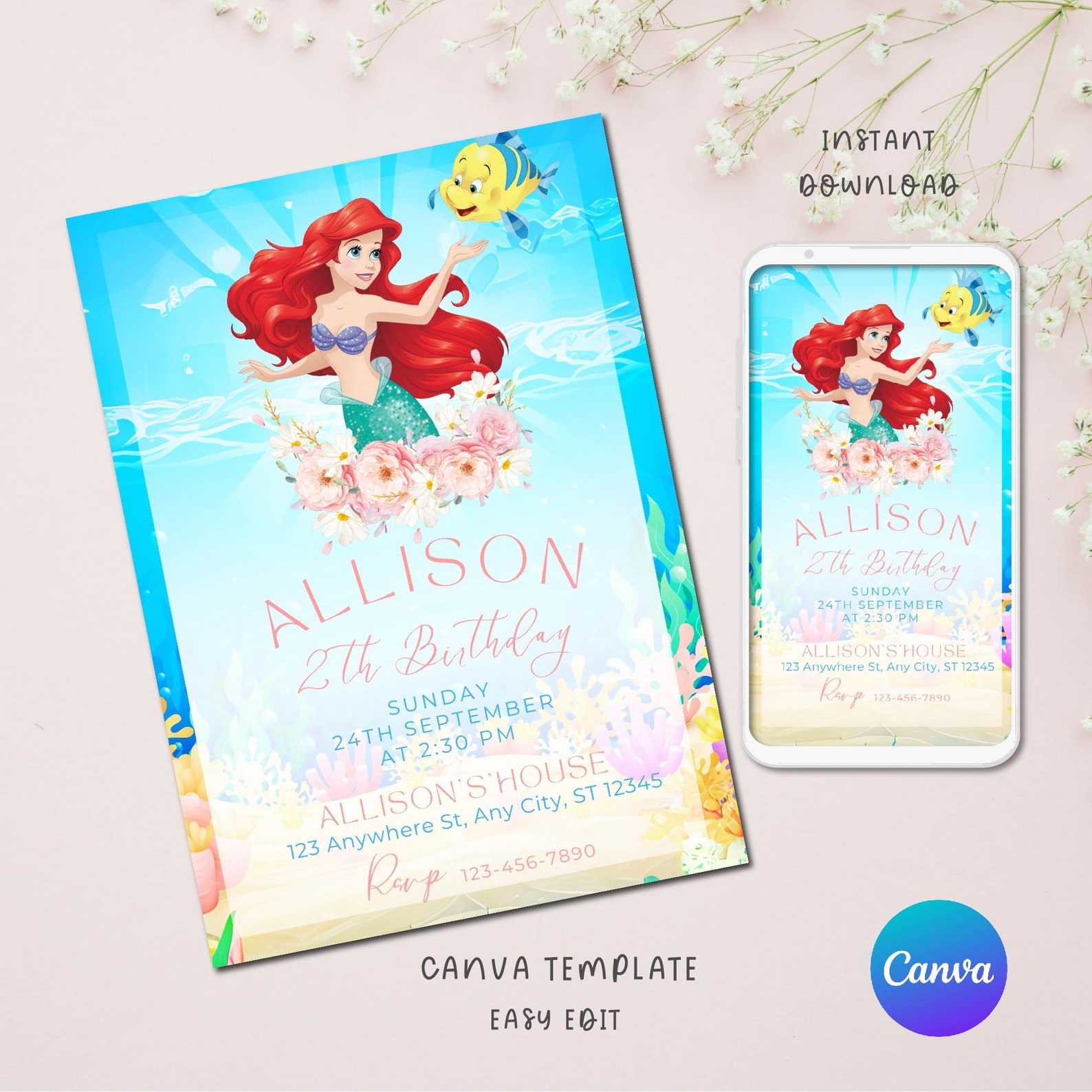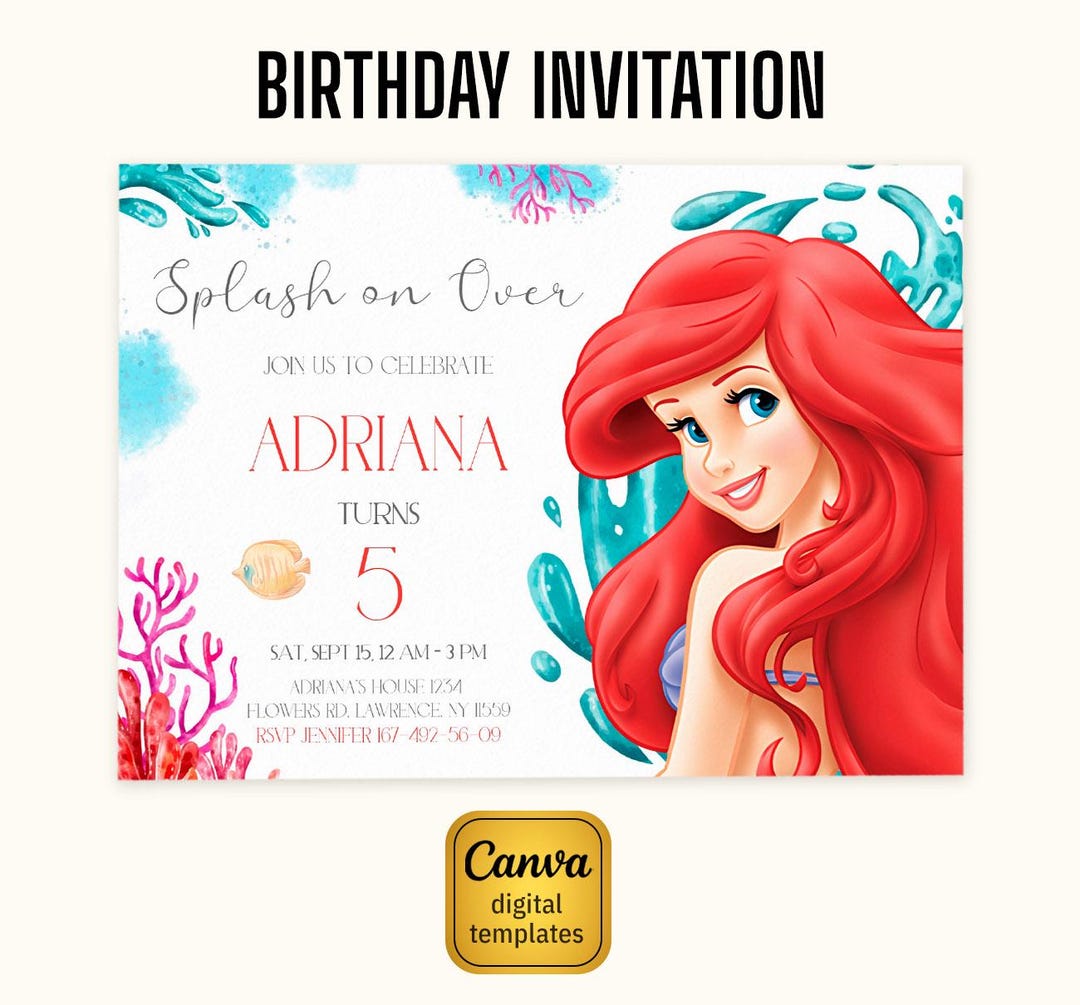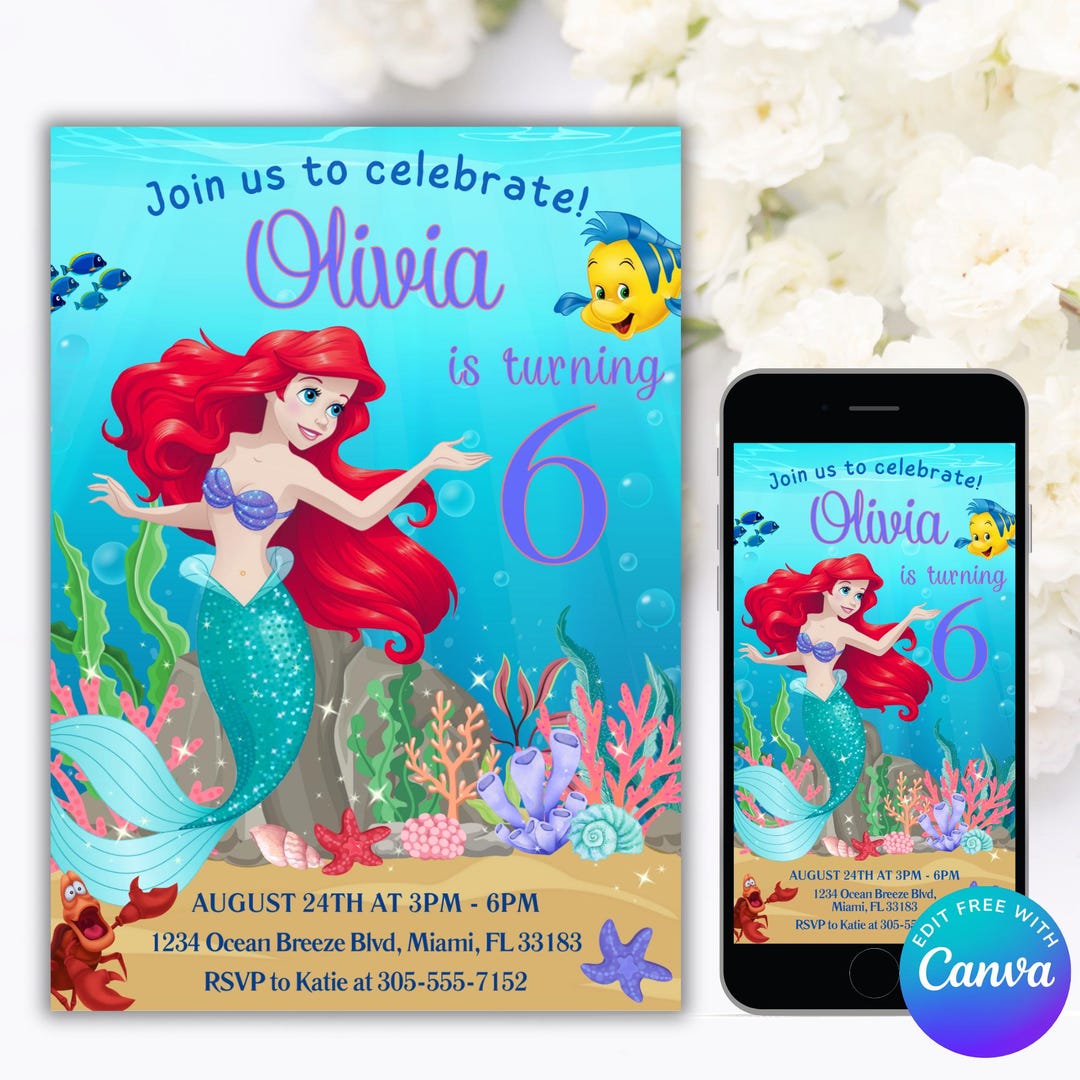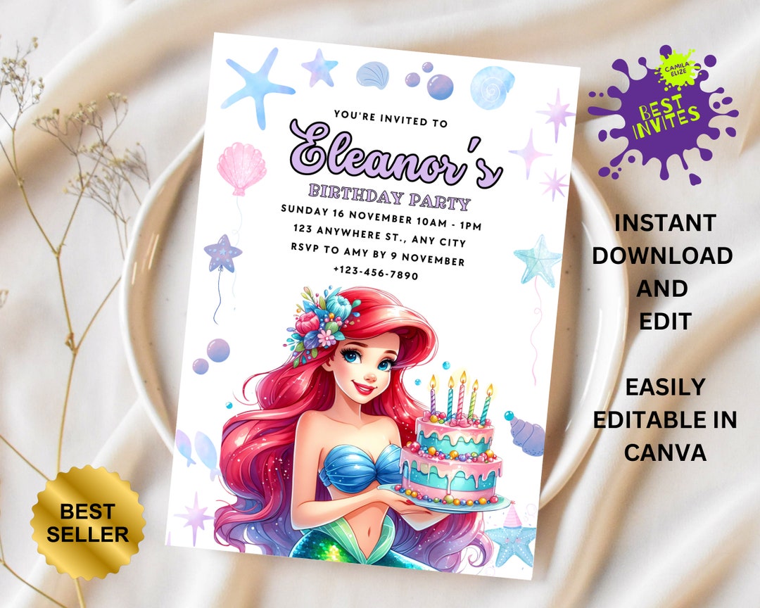 Editable Ariel Little Mermaid Birthday Invitation, Digital and ...