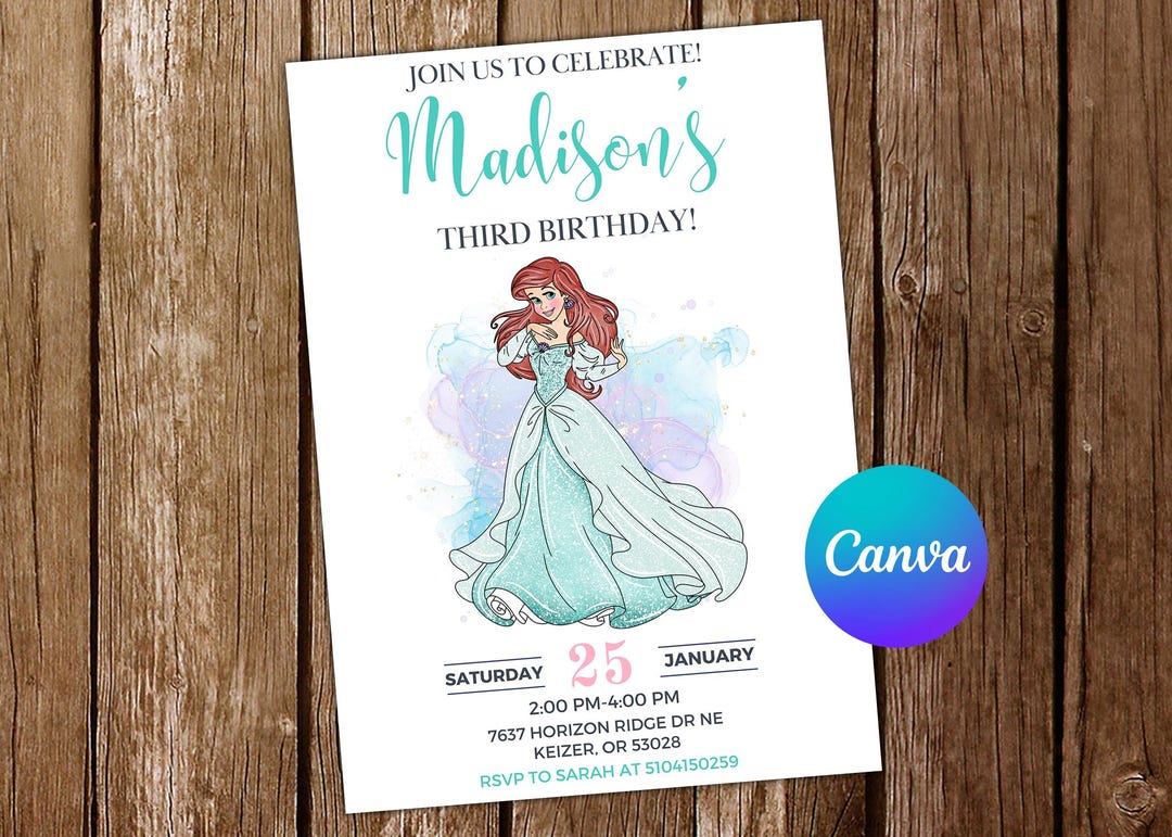 Little Mermaid Invitation Ariel Invitation Ariel Princess - Etsy