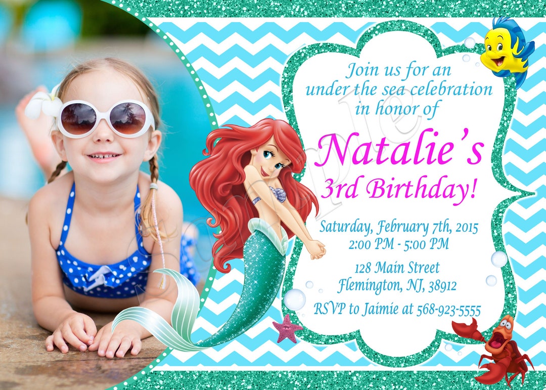 Little Mermaid Birthday Invitation With Photo Printable Ariel ...
