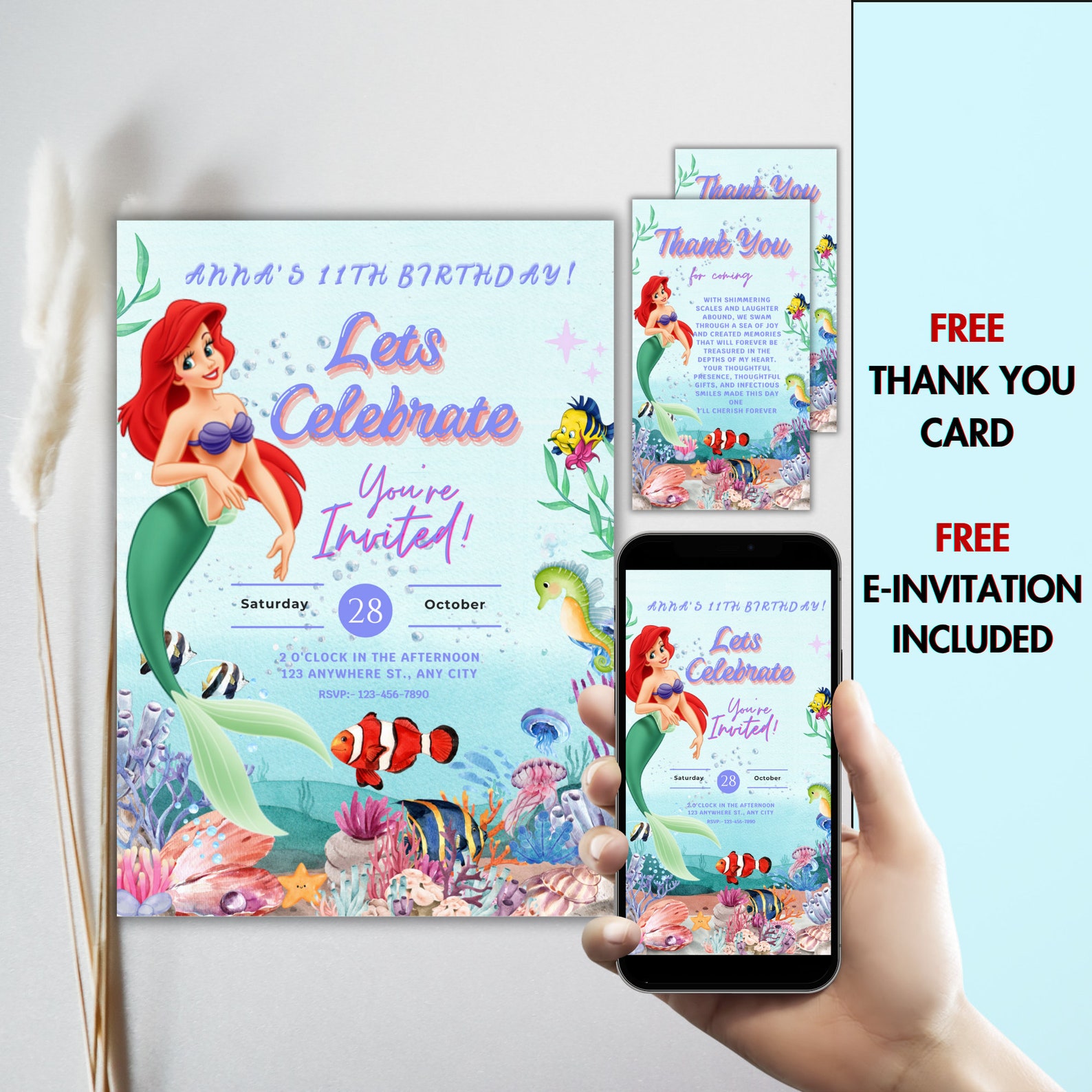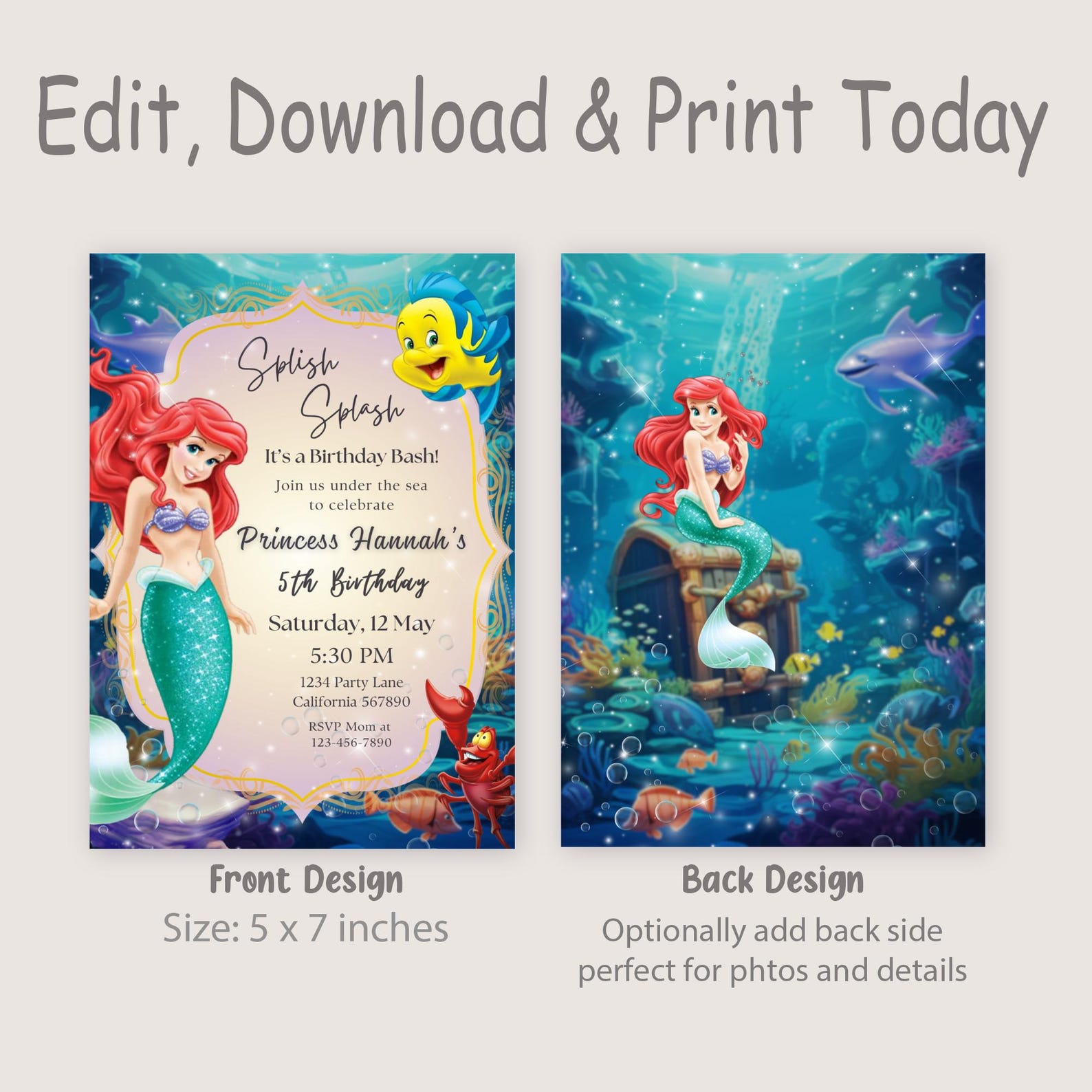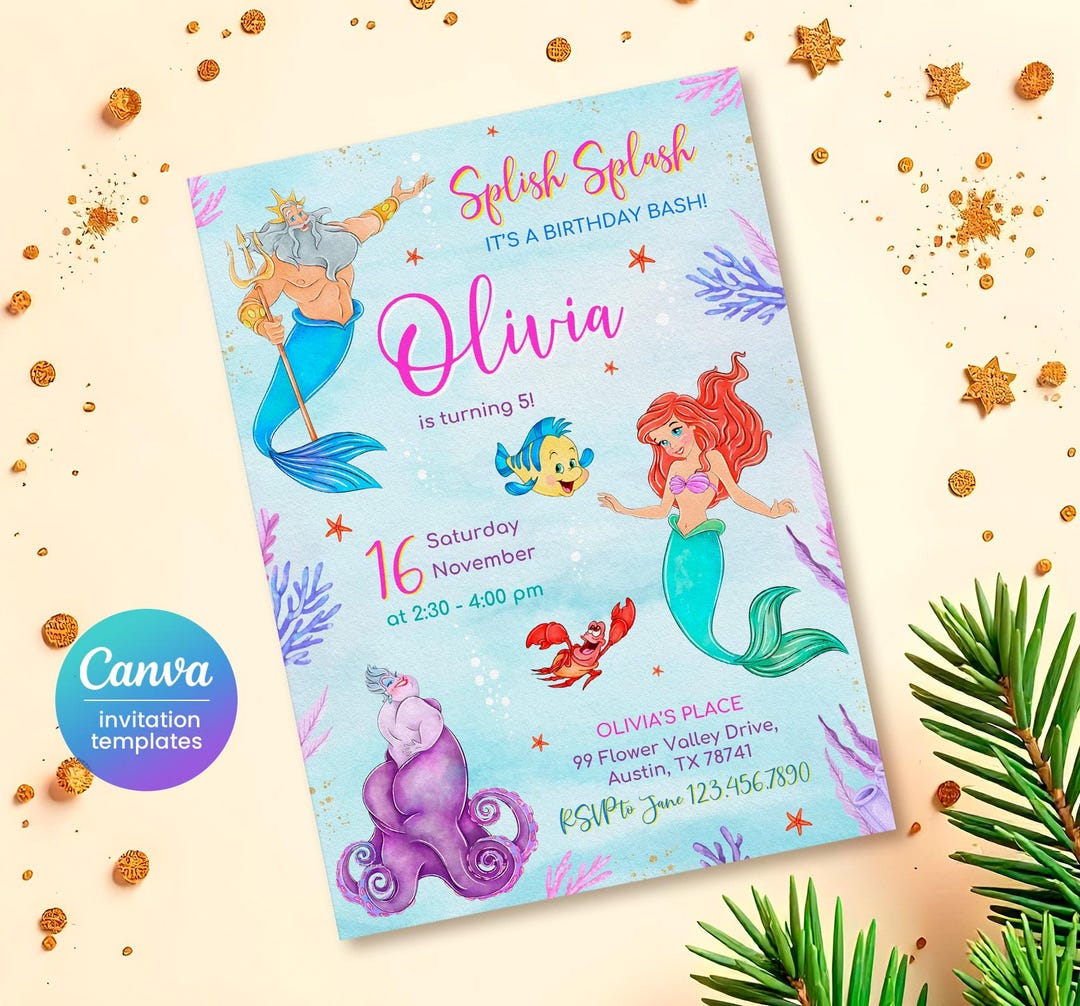 Ariel The Little Mermaid customizable invitation template | Share or ...