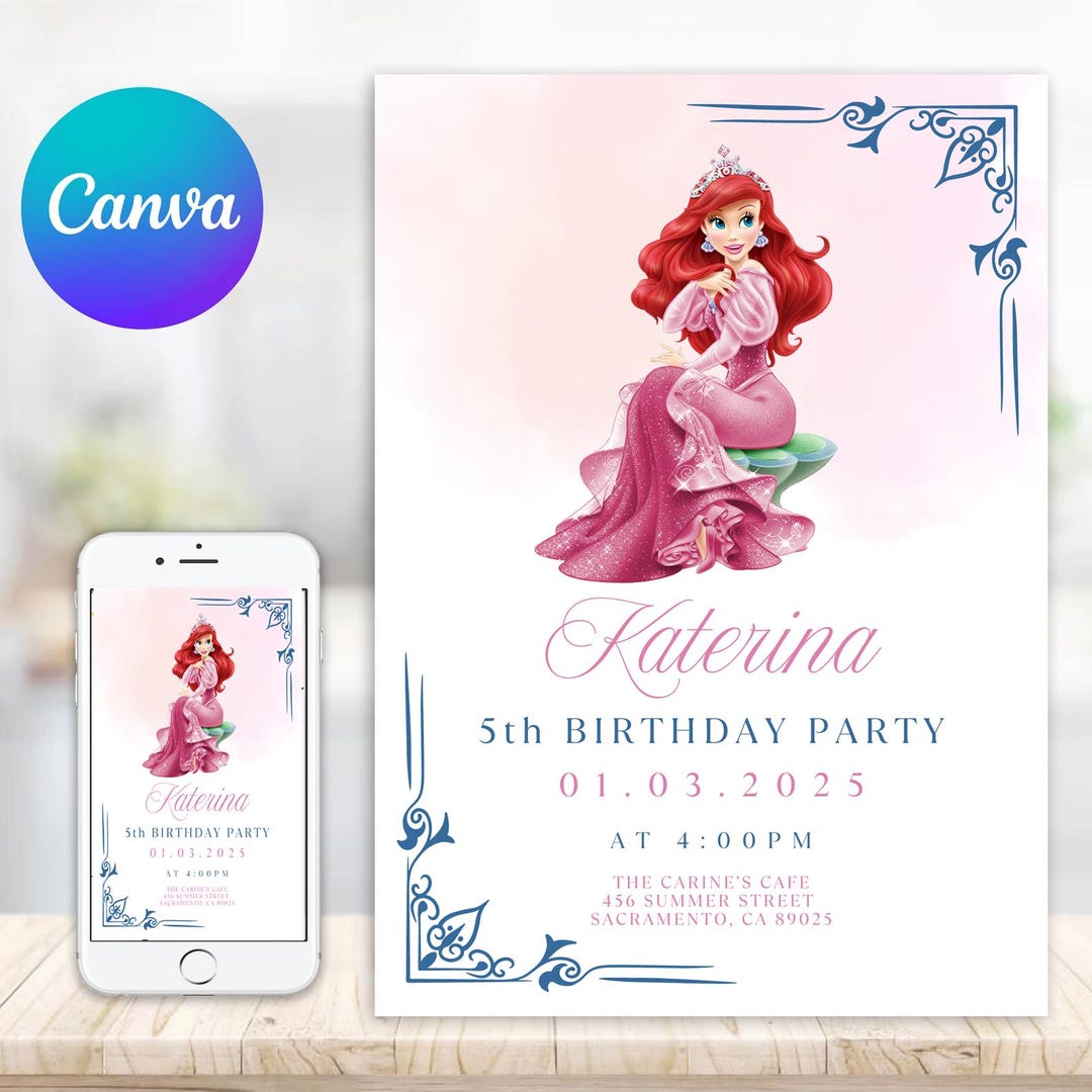 Free Aesthetic Princess Ariel Invitation Template to Edit Online