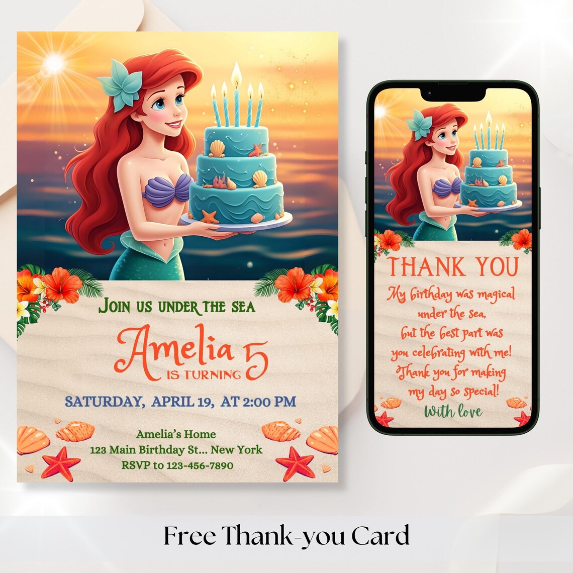 Little Mermaid Ariel Invitation Template - Edit Now Online, Print or Text