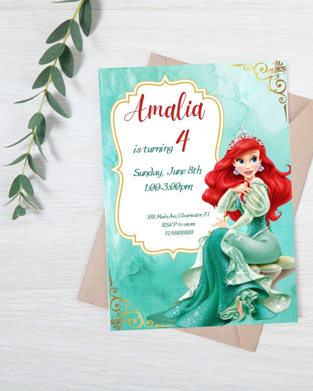 Little Mermaid Invitation Princess Ariel Disney Princess Digital File ...