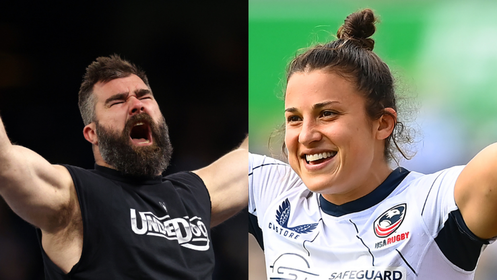 Video: Jason Kelce, USA Rugby's Nicole Heavirland Arm Wrestle at 2024 ...