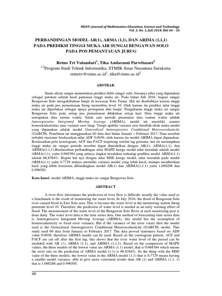 Perbandingan Model AR1 ARMA 11 Dan ARIMA 111 Pada | PDF | Metode ...
