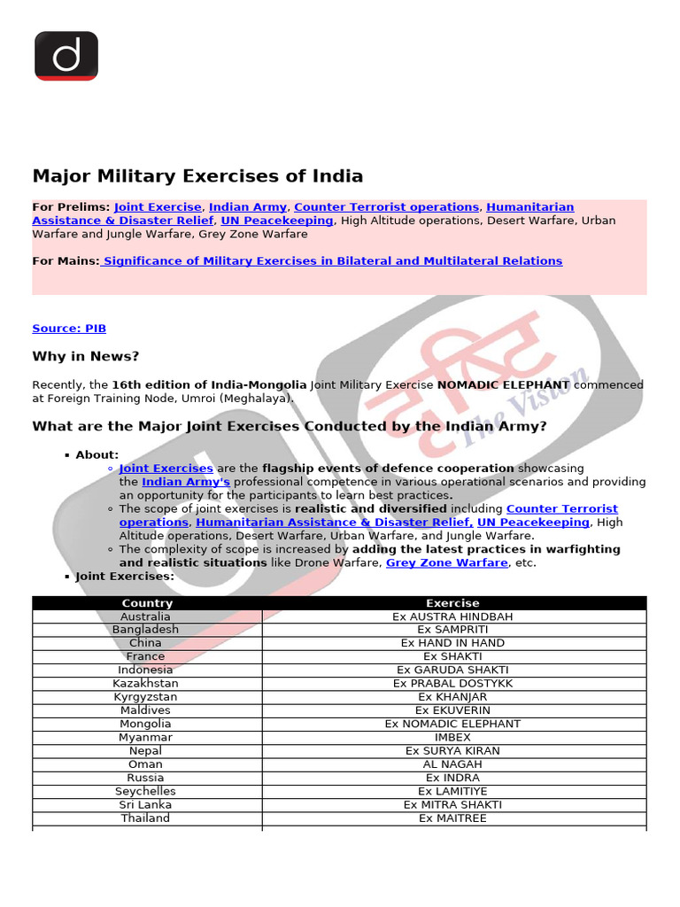 Military Exercises At A Glance- Shield Defence Academy | PDF